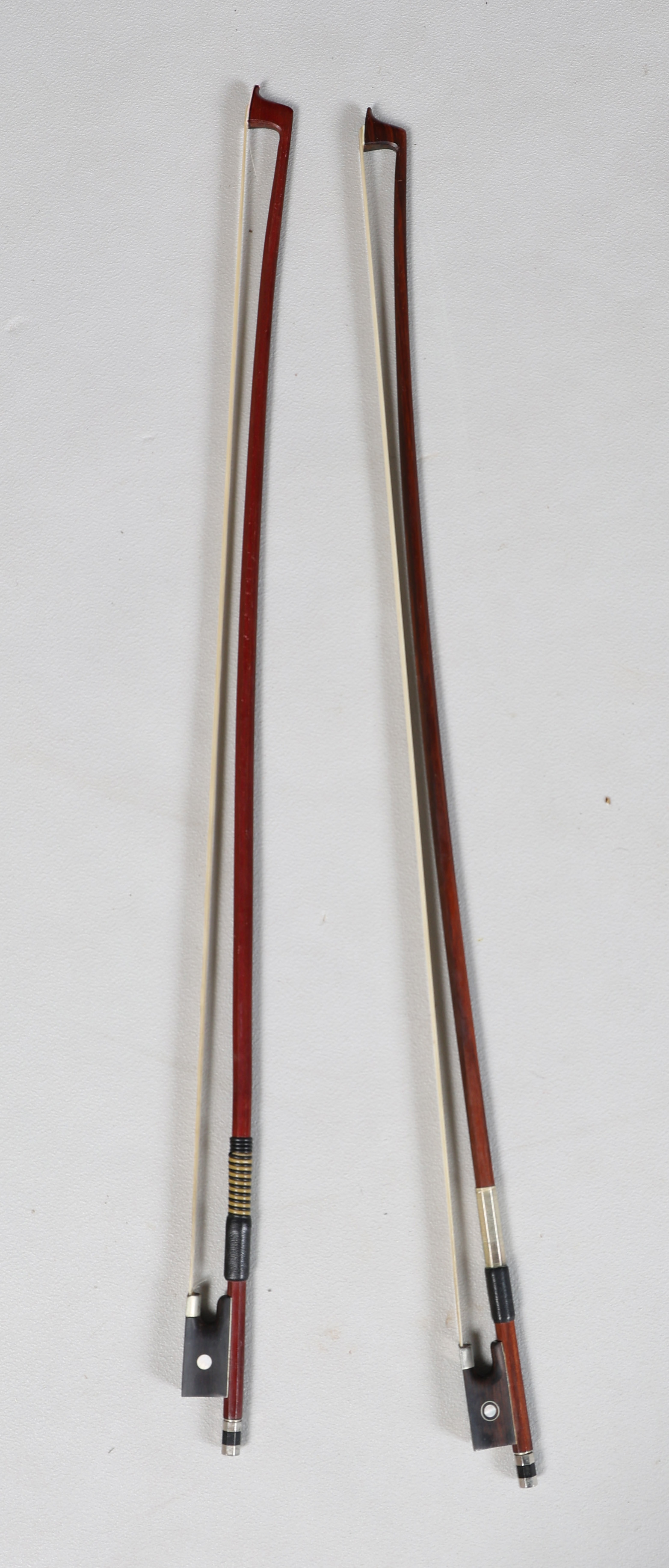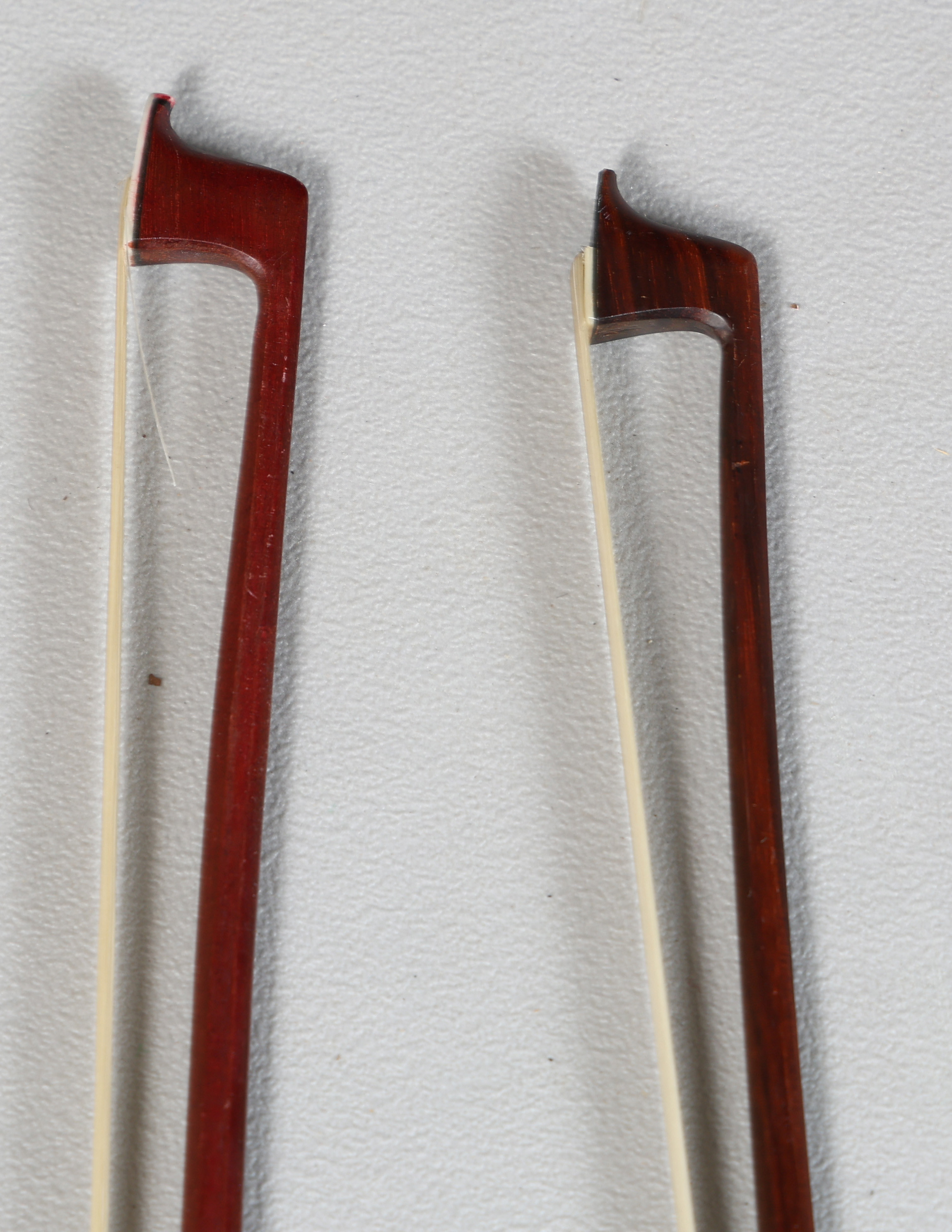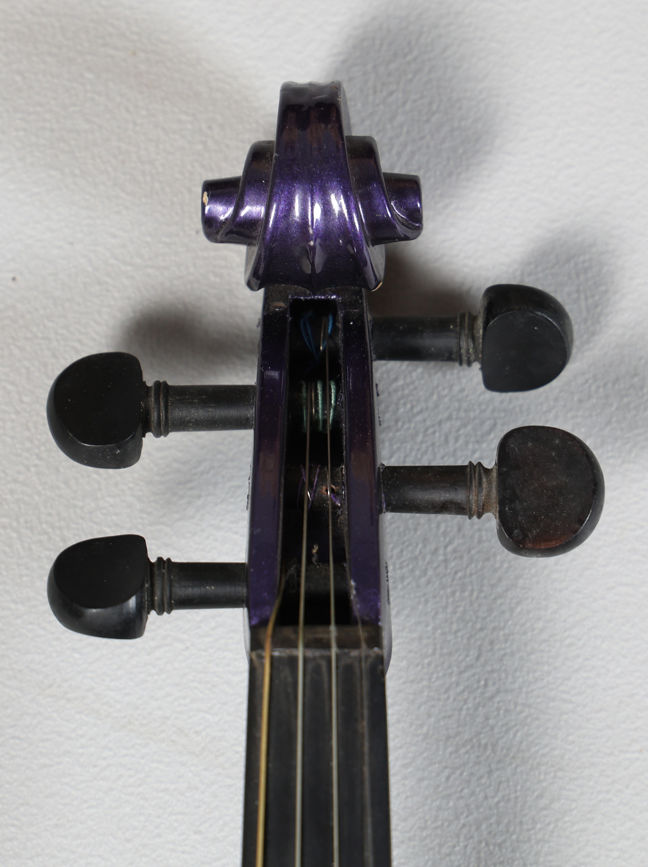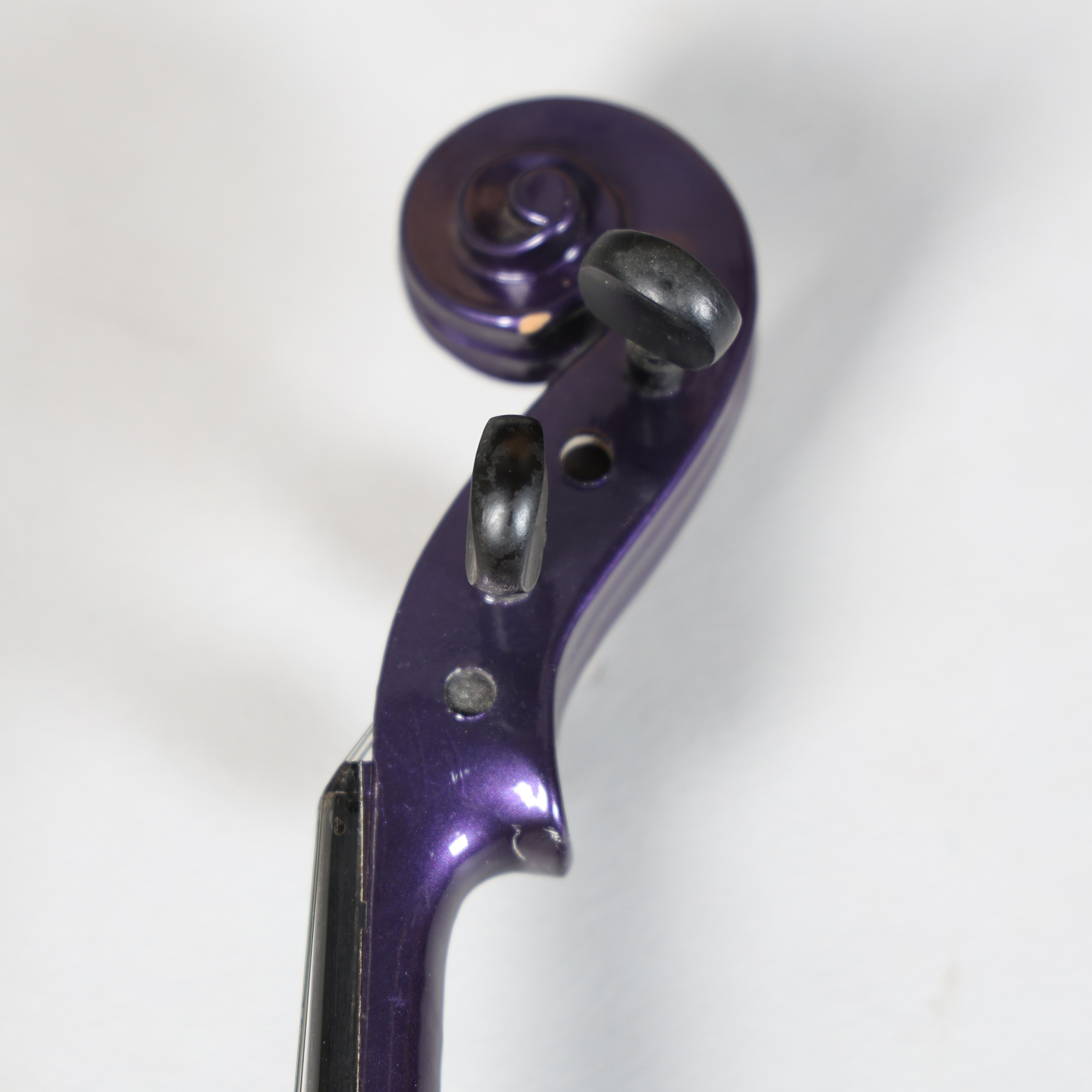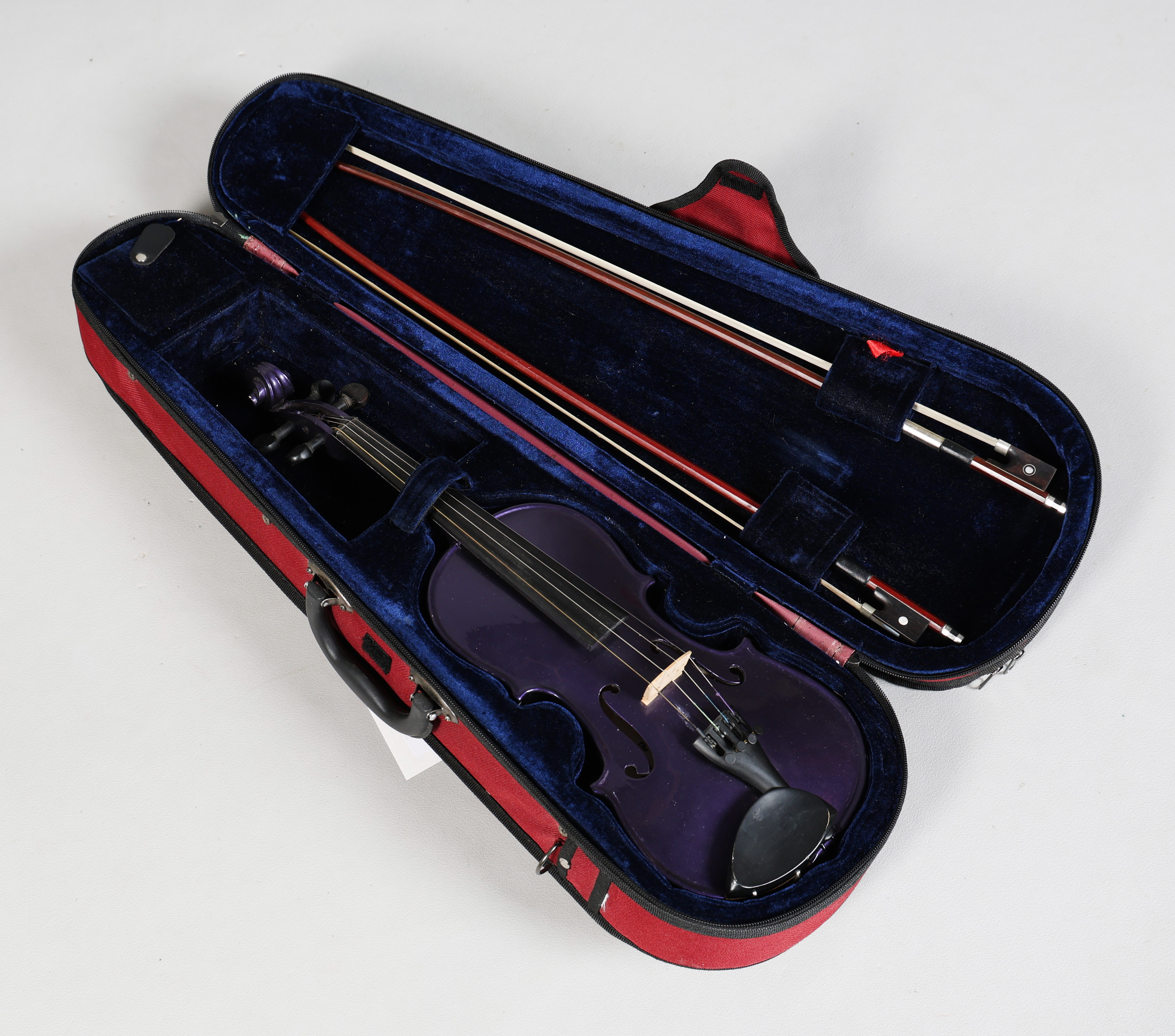 . 4339727. EINE VIOLETTE 1/2 GEIGE IM GEHÄUSE MIT ZWEI BÖGEN.