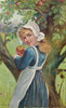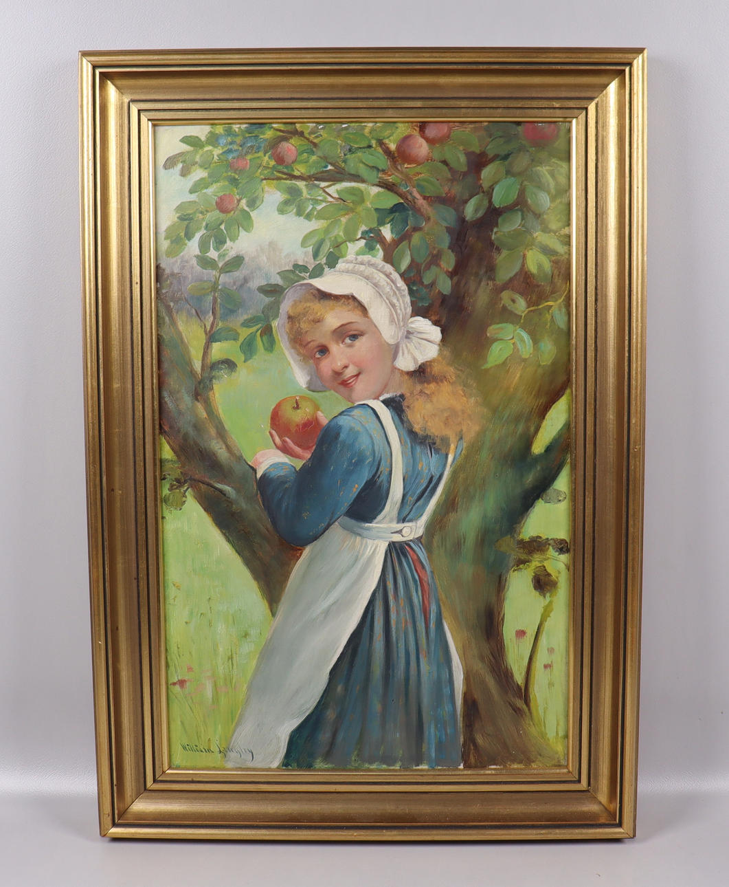 4340248. WILLIAM LANGLEY, Öl auf Leinwand, Mädchen pflückt Äpfel.
