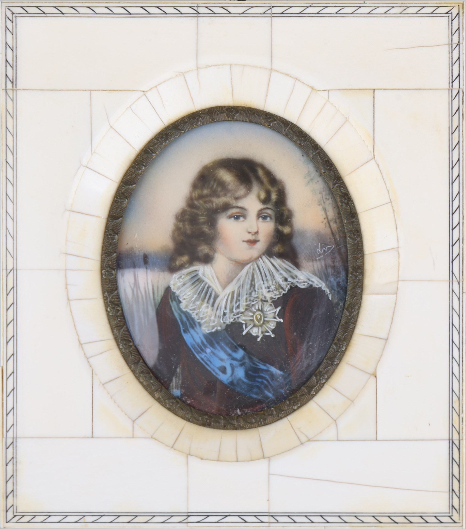 4341291. OIDENTIFIERAD KONSTNÄR. Miniaturmalerei im Knochenrahmen.