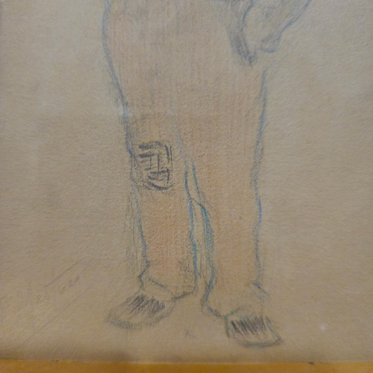 JOAN MESTRE. EIN MANN, DER EINE PFEIFE RAUCHT. BLEISTIFT AUF PAPIER.