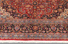 Hauptfeld mit roter Grundfarbe, Mittelmedaillon und Eckornamenten. Das Hauptfeld ist auch mit Palmetten- und Arabeskenkranichen dekoriert. Hauptbordüre mit dunkler Grundfarbe und Rand aus Palmette und Arabeske.