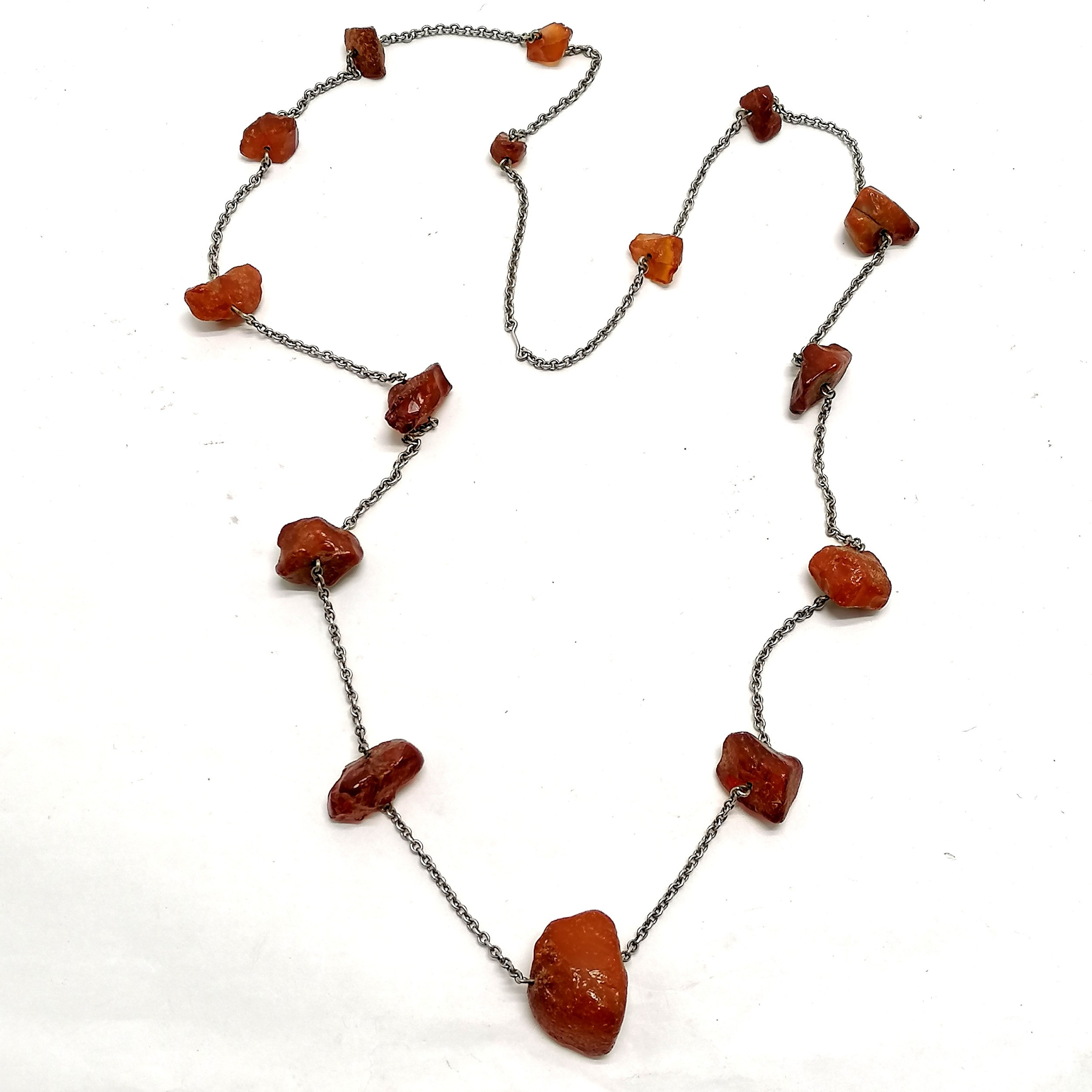 4341812. PERLENKETTE AUS ROHEM BERNSTEIN AN SILBERKETTE.