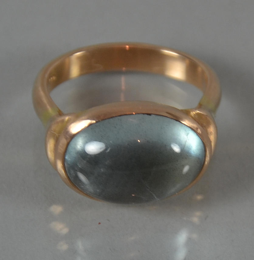 Ring in 585er Gold mit Aquamarin Cabochon.