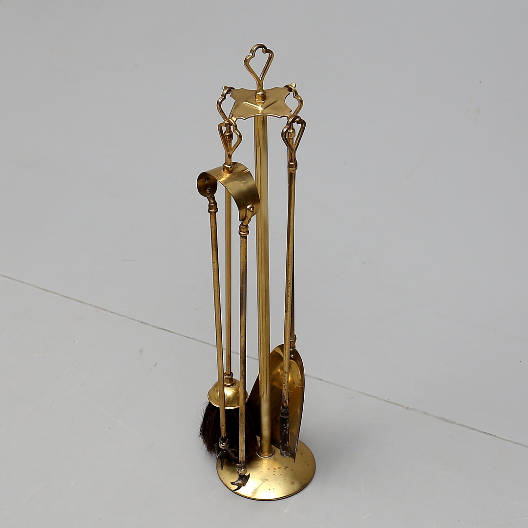 434291. MESSING-SET / KAMIN, Messing, 5-teilig, zweite Hälfte des 20. Jahrhunderts.