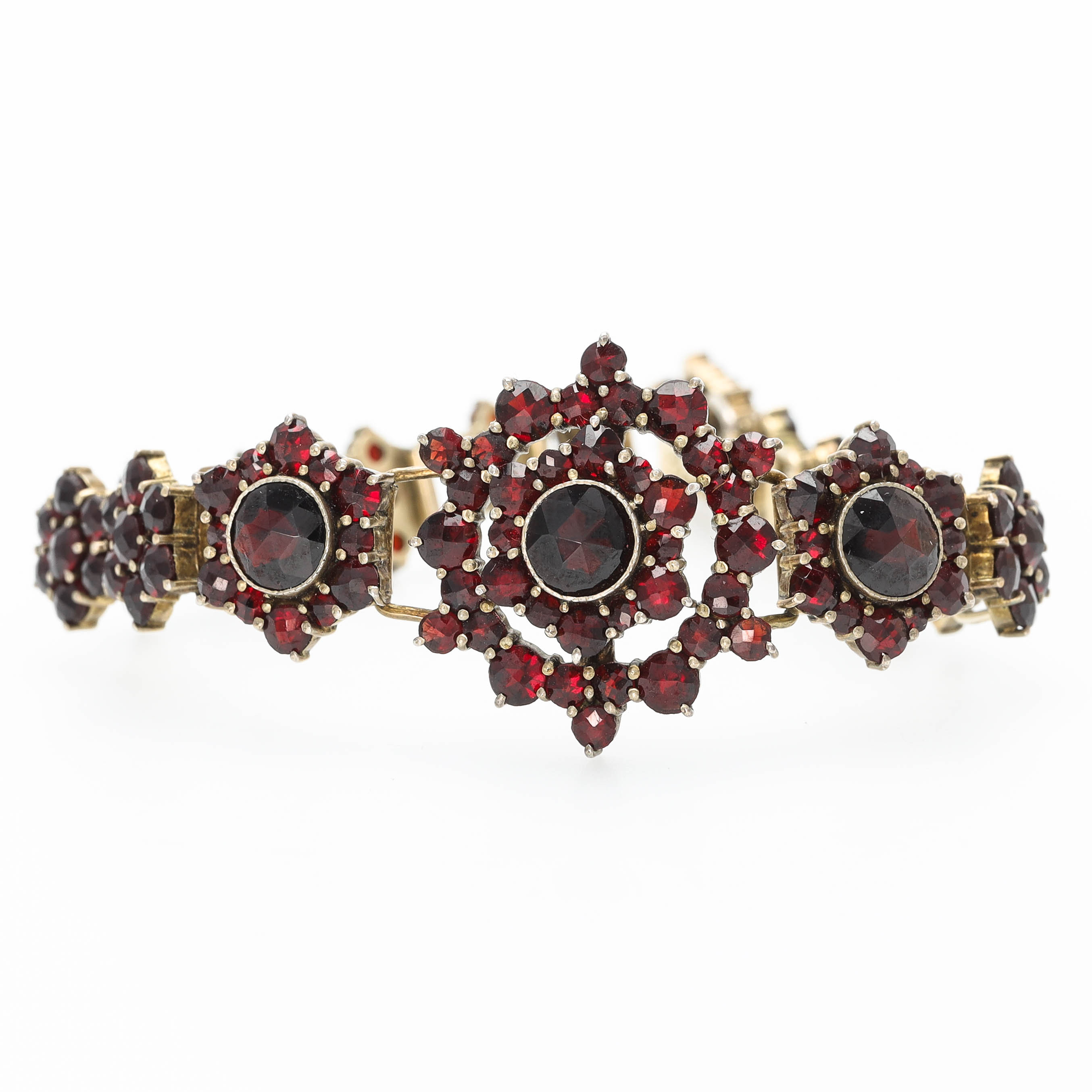 4344121. ARMREIF, vergoldetes Silber, Granate.