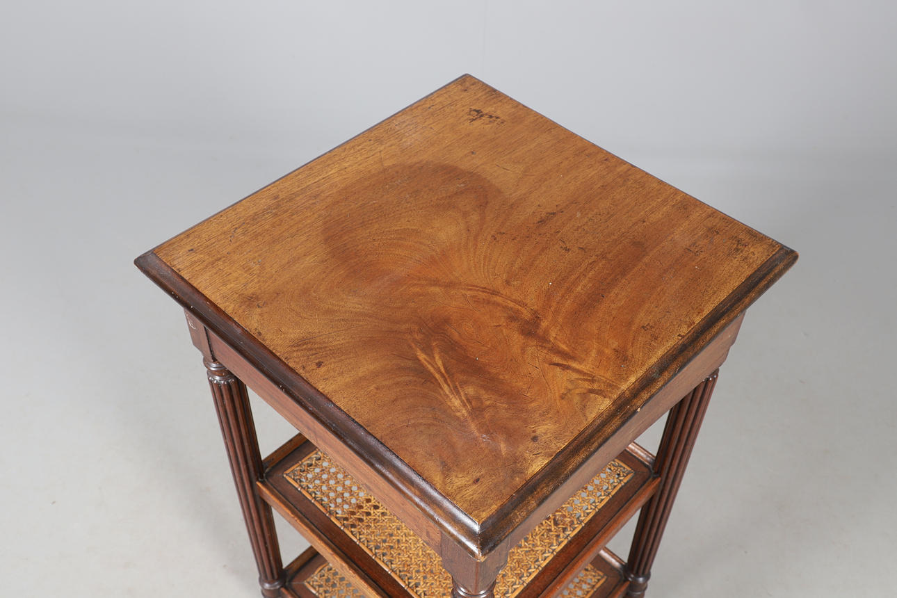 EIN DREISTÖCKIGER MAHAGONI-TISCH MIT EINER SCHUBLADE.