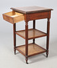 4344237. EIN DREISTÖCKIGER MAHAGONI-TISCH MIT EINER SCHUBLADE.