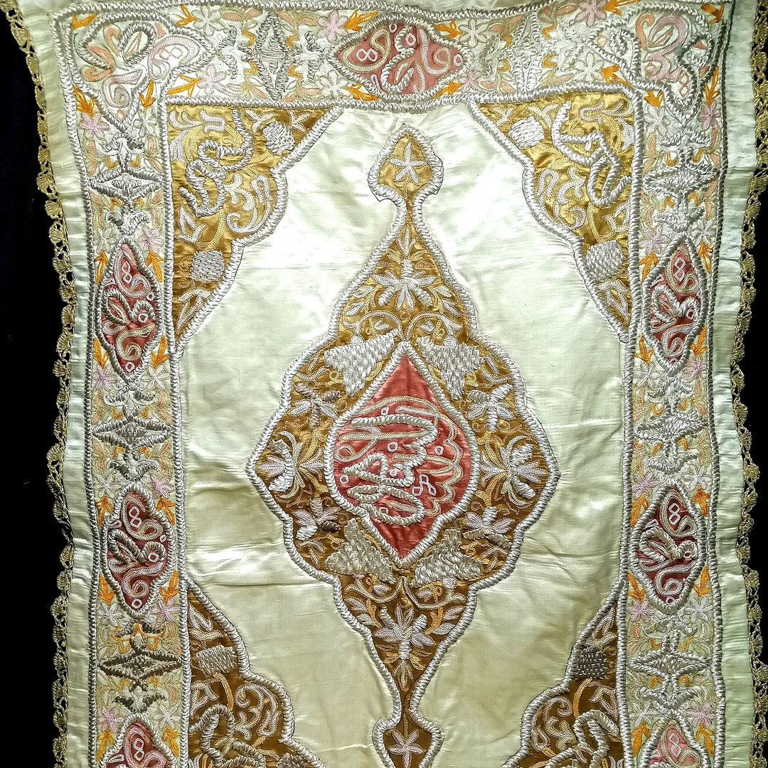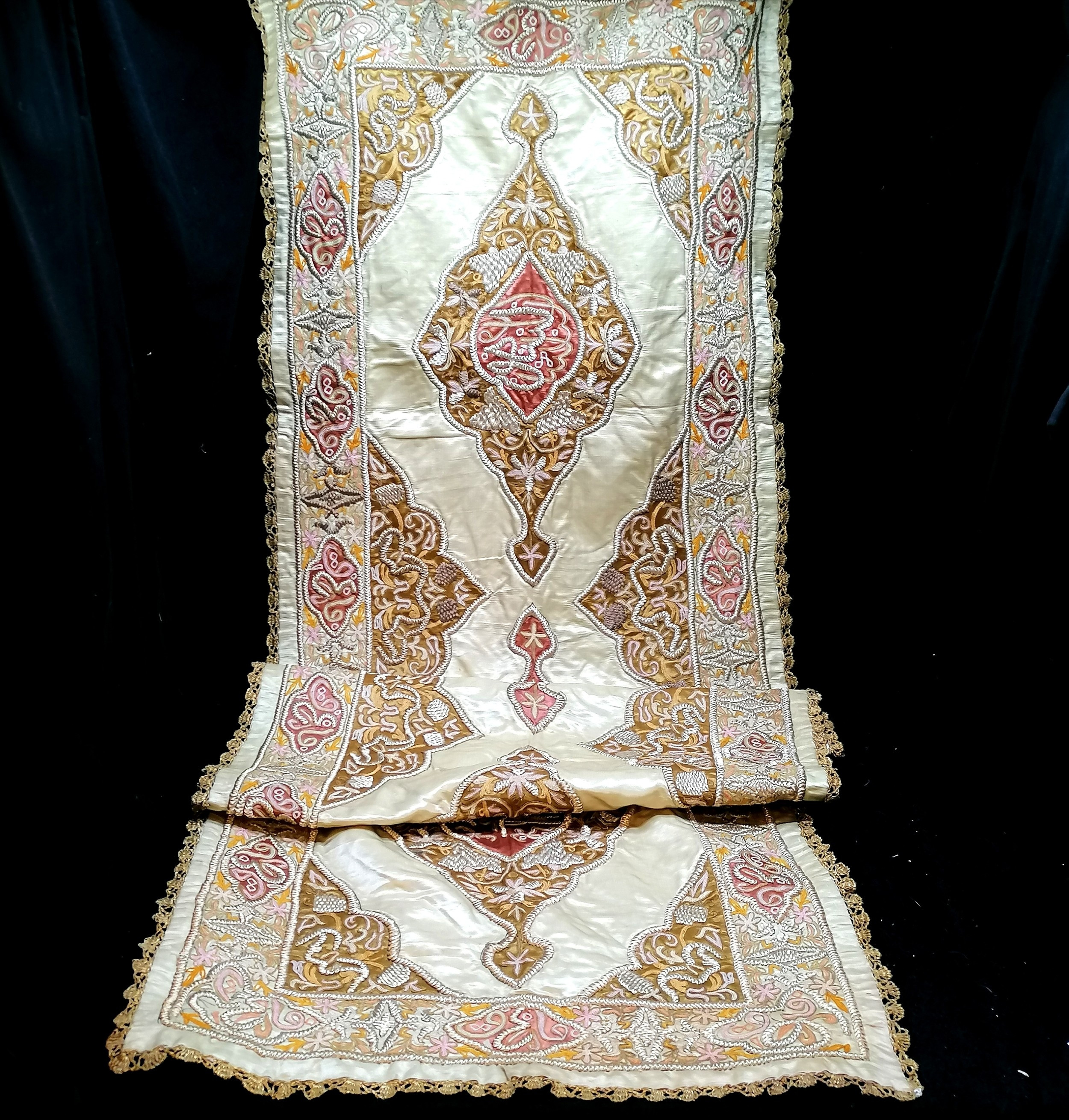 4344455. ANTIKER BESTICKTER HELLGRÜNER SEIDENLÄUFER.
