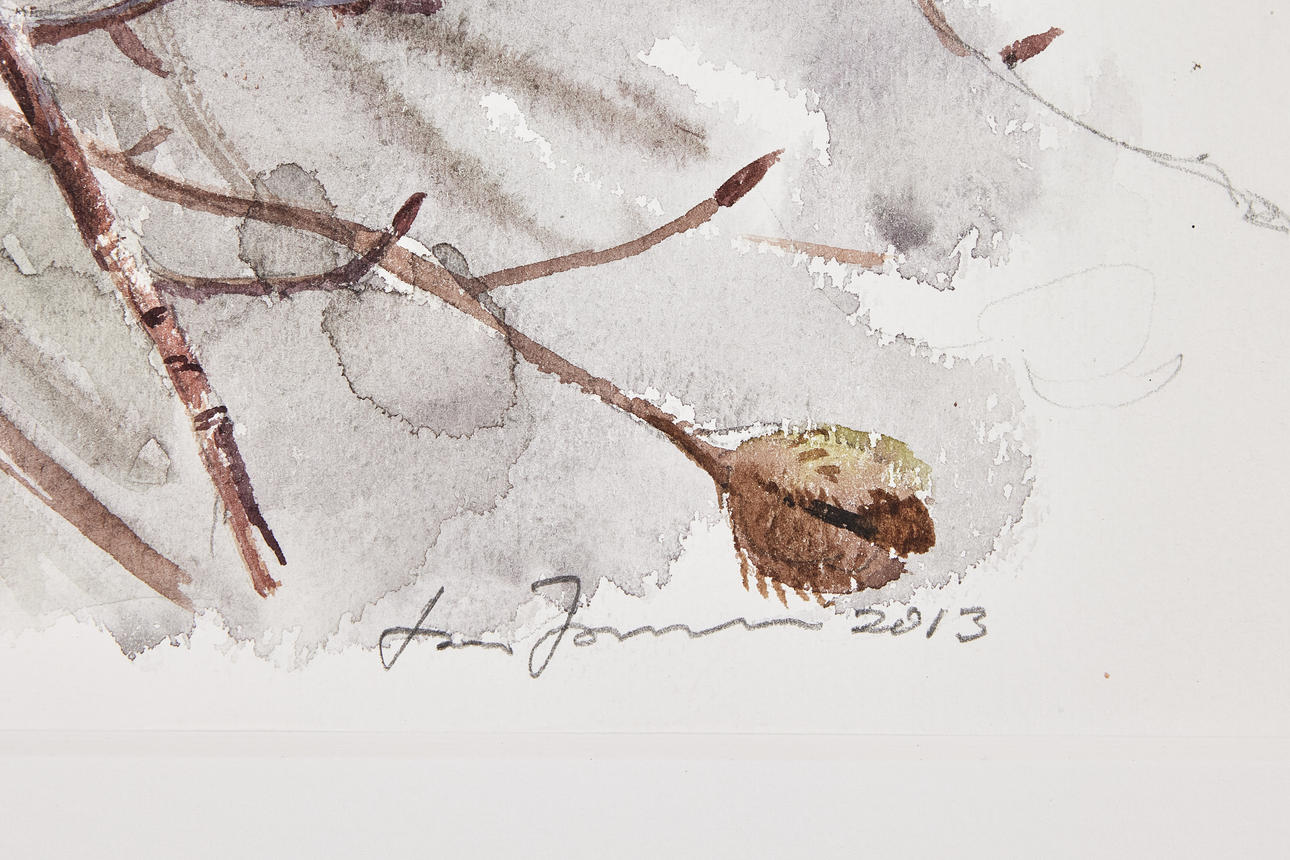 Aquarell auf Papier, 31,5 x 33,5 cm, inklusive Rahmen 50 x 51 cm. Signiert Lars Jonsson und datiert 2013.