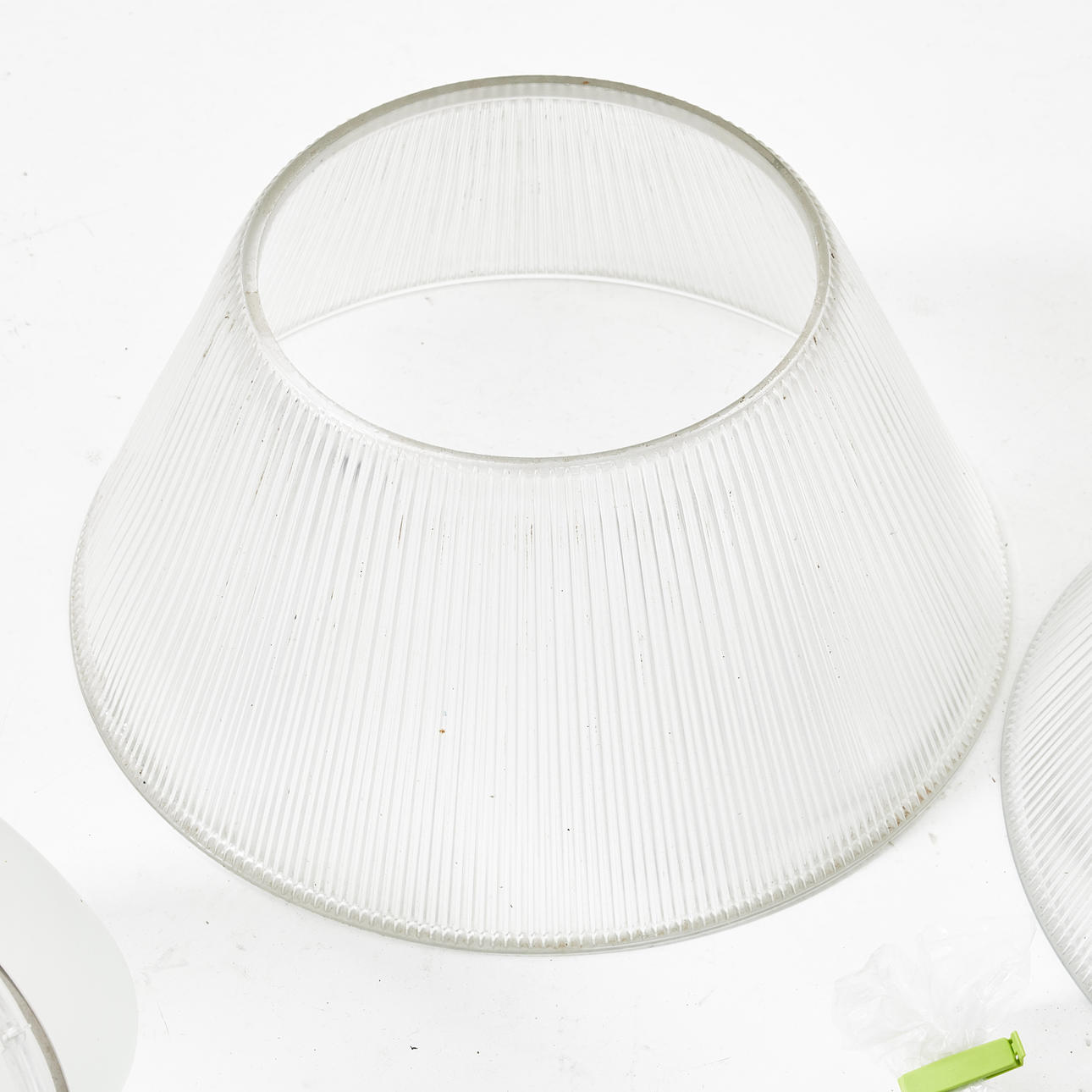 Innenbecher aus satiniertem Glas, Sieb aus geripptem Glas, 1 zusätzlicher Bildschirm aus geriffeltem Glas und 1 Beutel mit zusätzlichen Teilen, Bildschirmhöhe ca. 22, Durchmesser 50 cm.