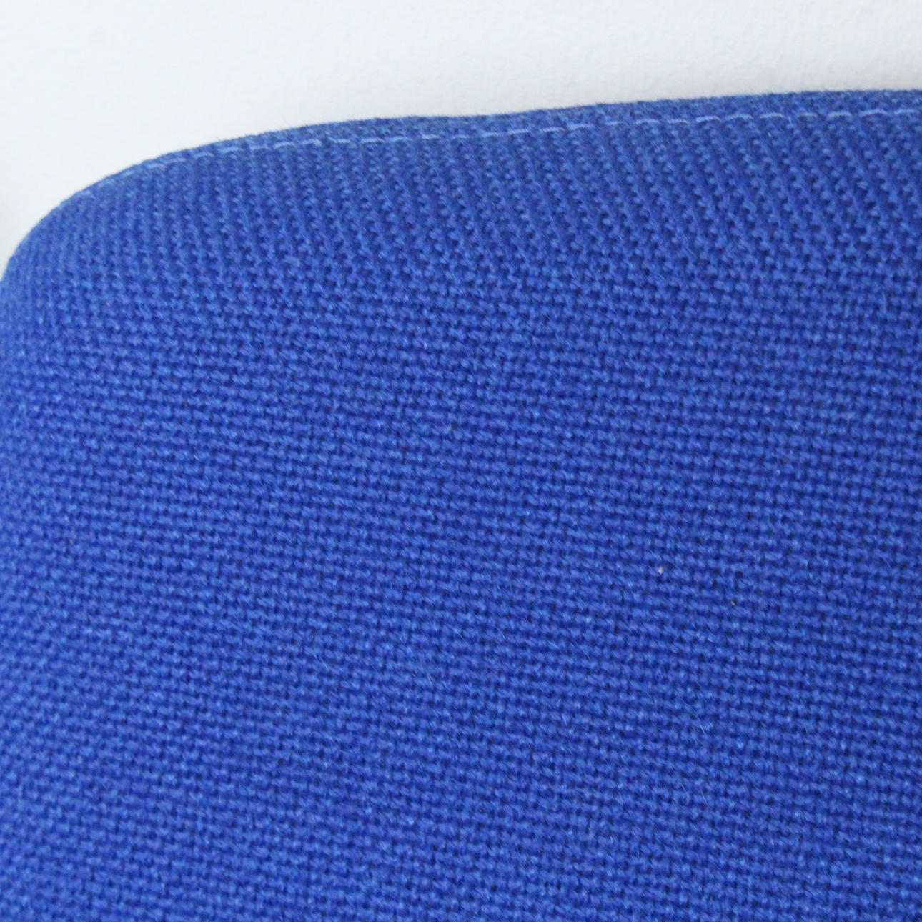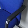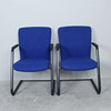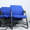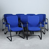 Neun Freischwinger / Armlehnstühle / Konferenzstühle, aufgepolstert und mit blauem Stoff bezogen, Konstruktion aus schwarz lackiertem Metall und Kunststoff,