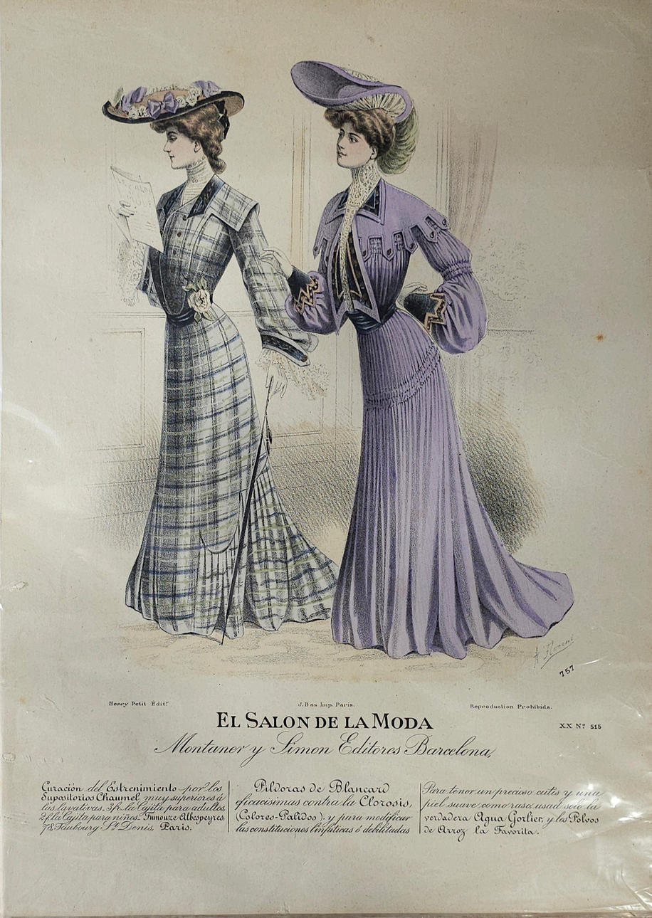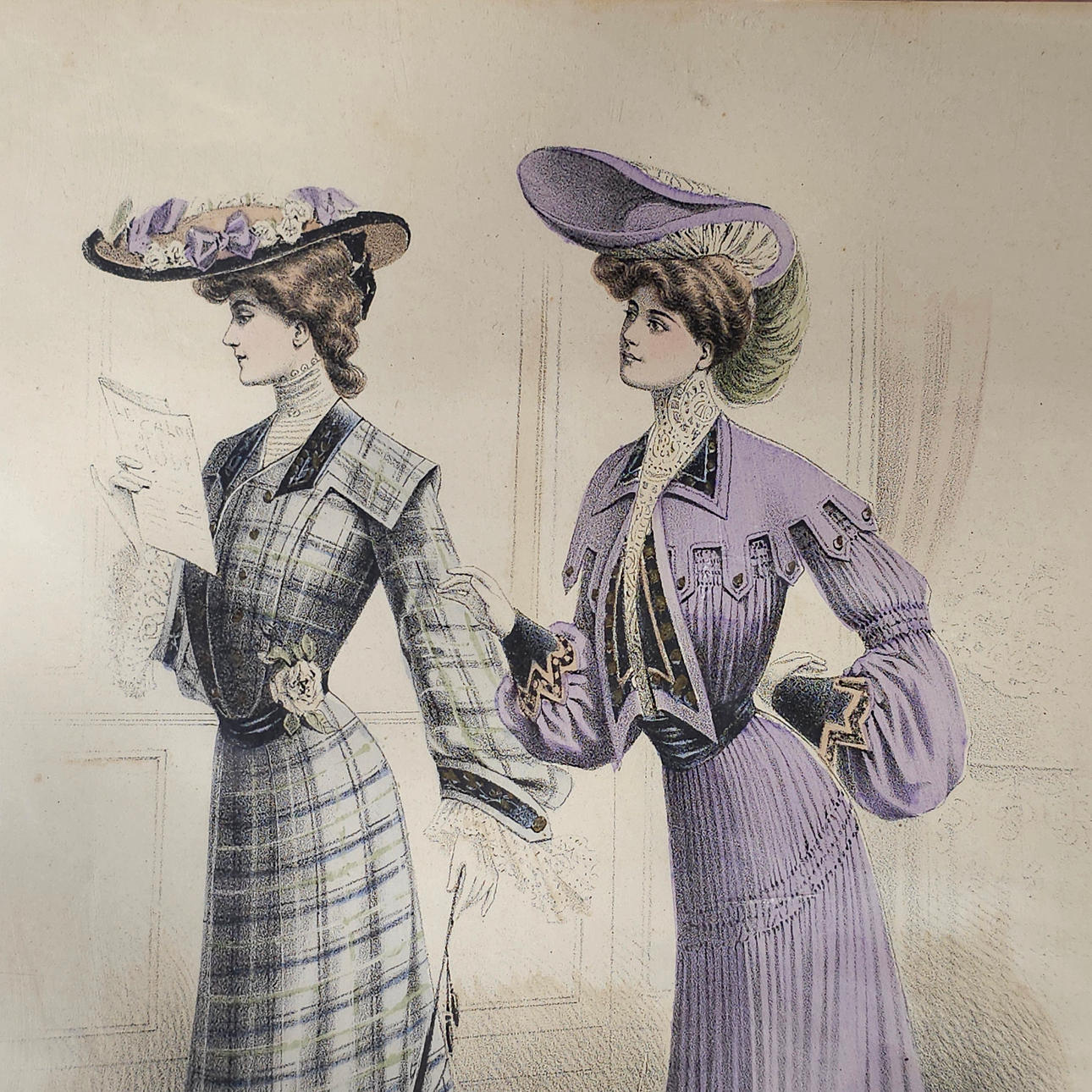„Die Modenschau“ zwei handkolorierte Lithografien.