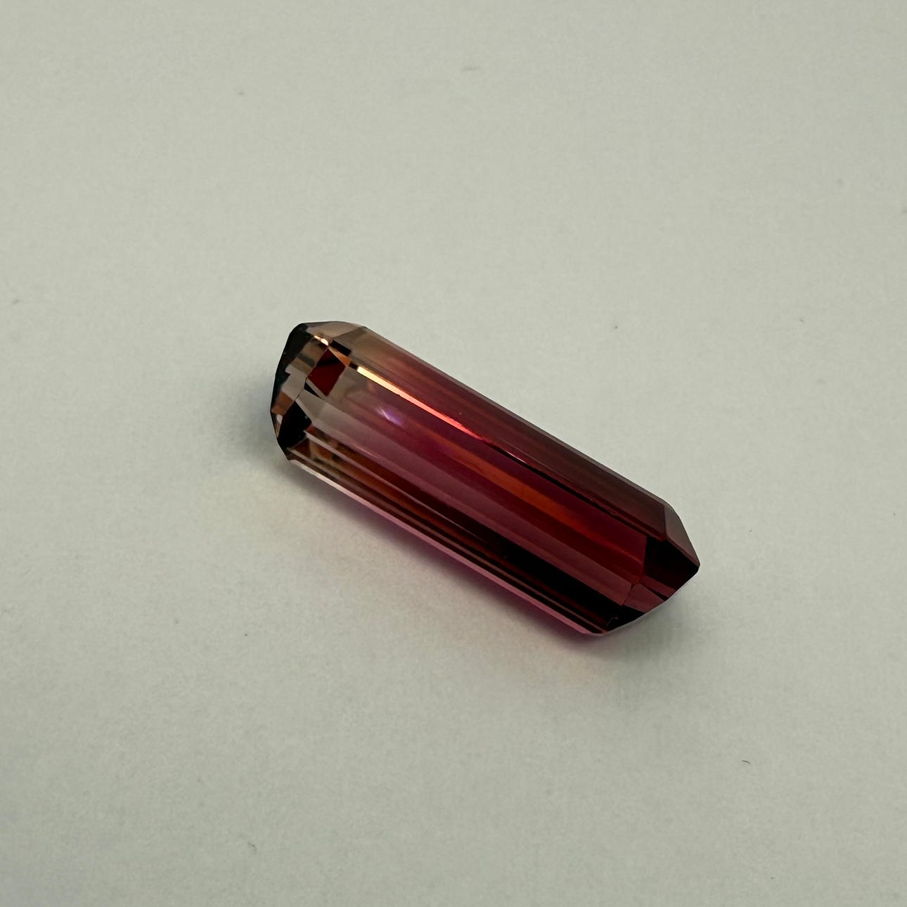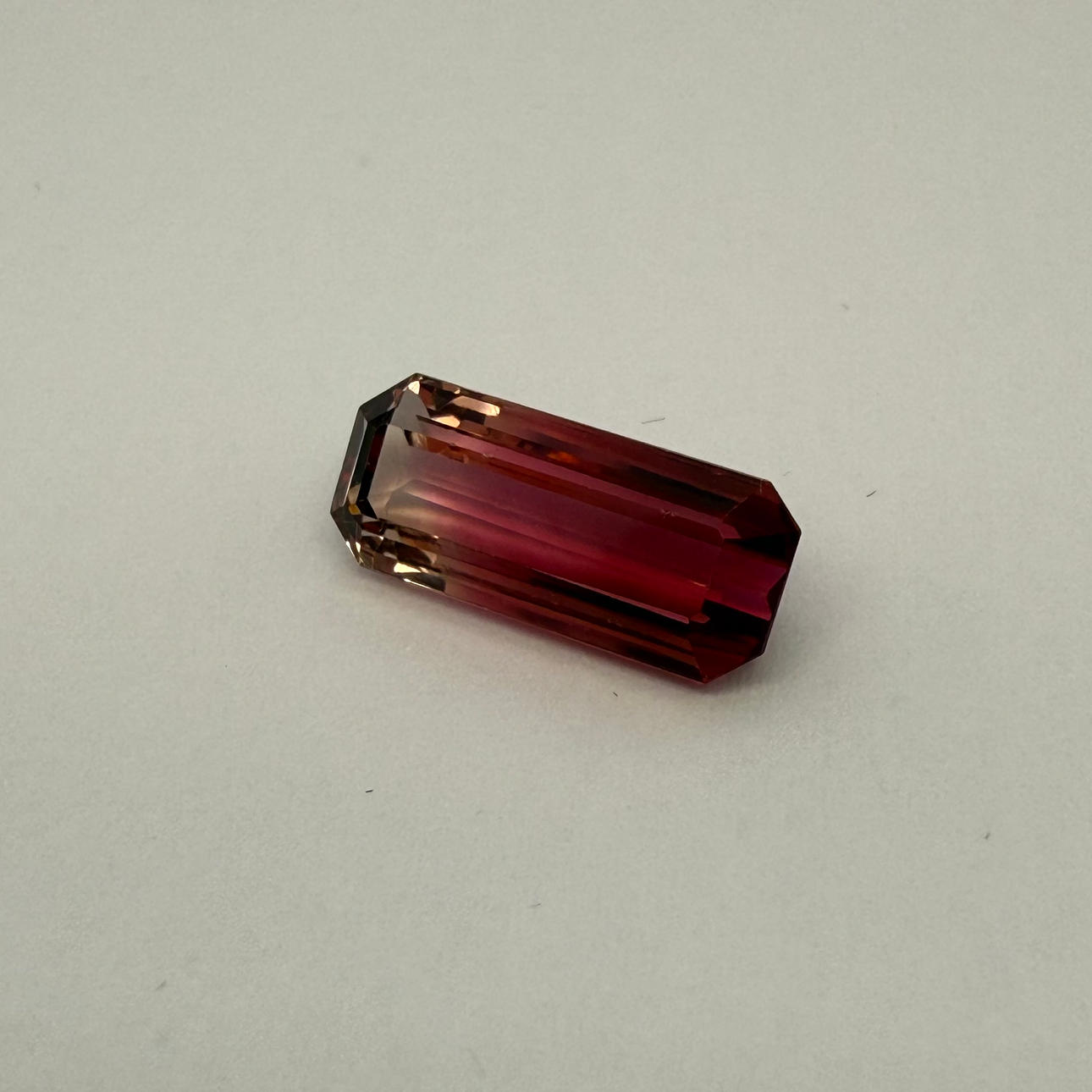 Ein facettierter zweifarbiger Turmalin, rosarot bis hellgelb ca. 14,25 x 5,95 x 4,50 mm, 3,81 ct.