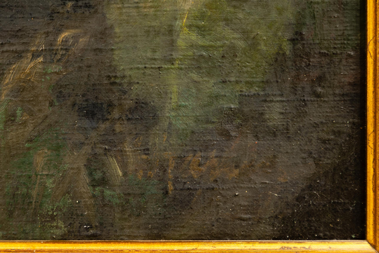 Leinwand minimal wellig, geringe Gebrauchsspuren.
