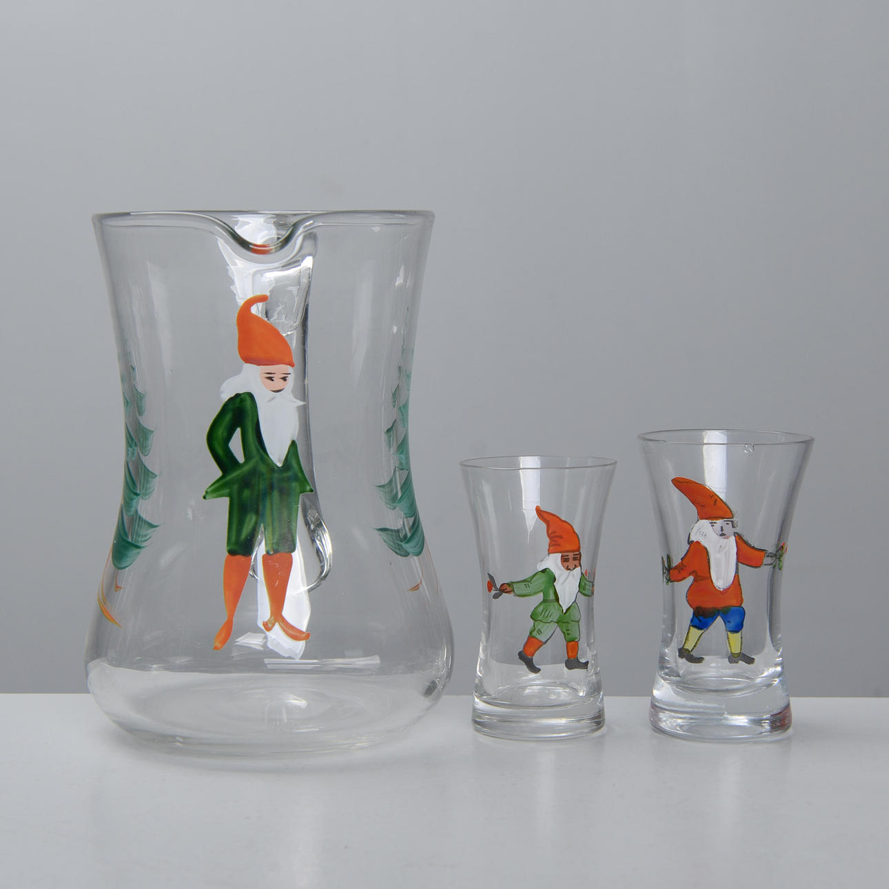GLÖGGSERVIS, 8 Stück, Glas mit handbemaltem Dekor.