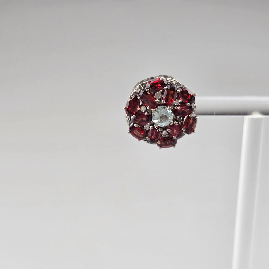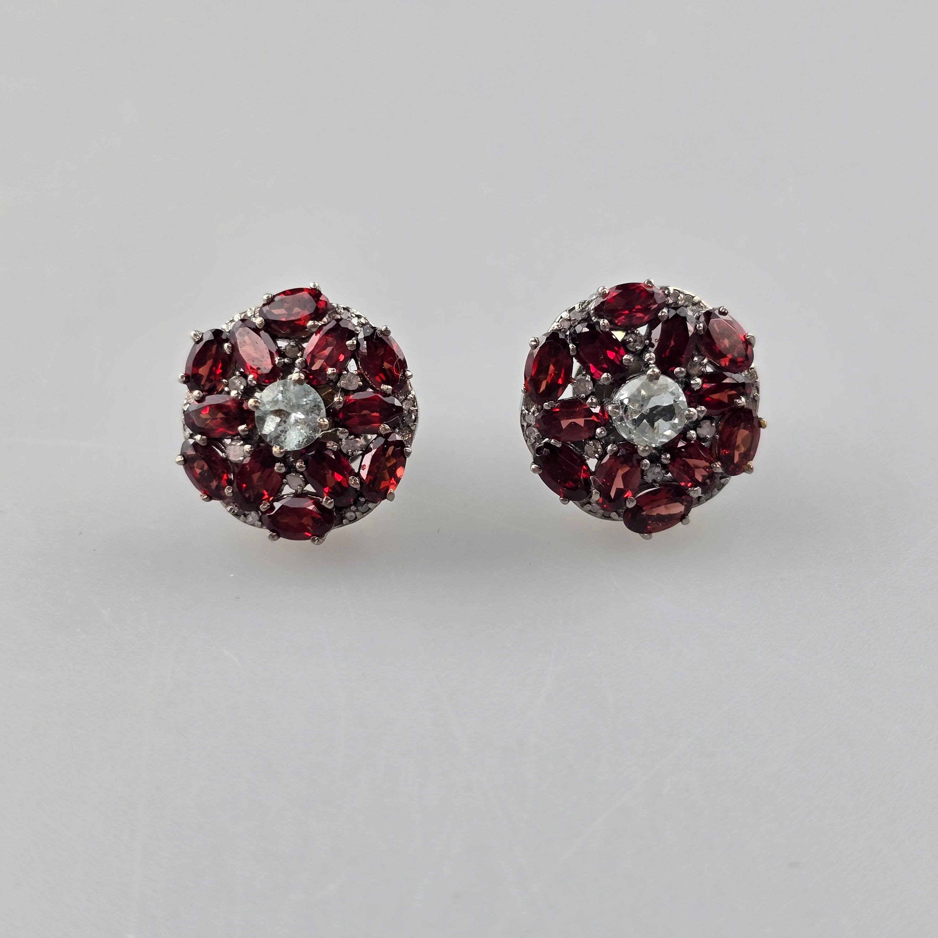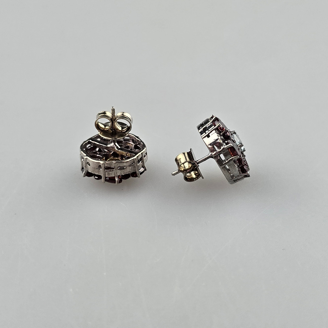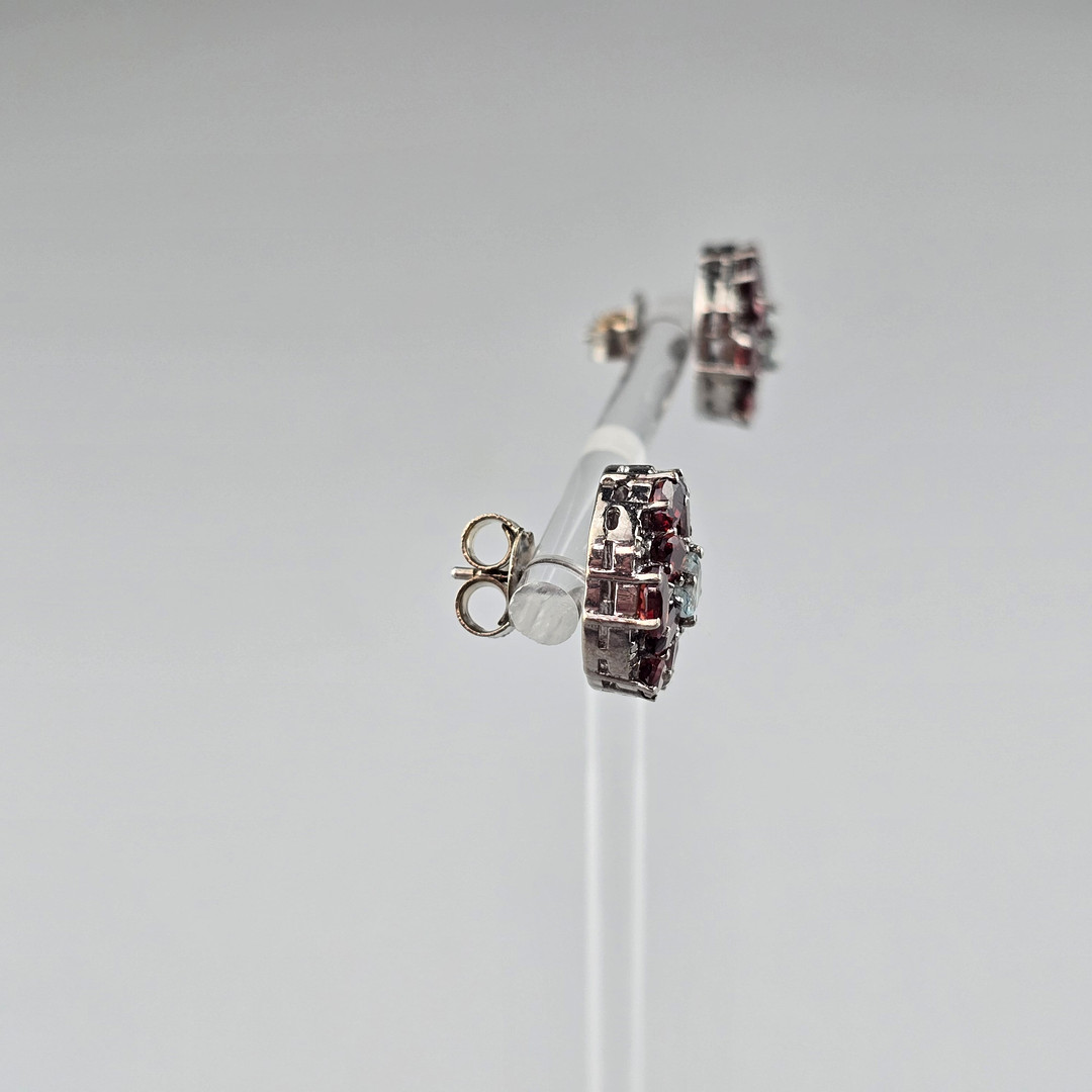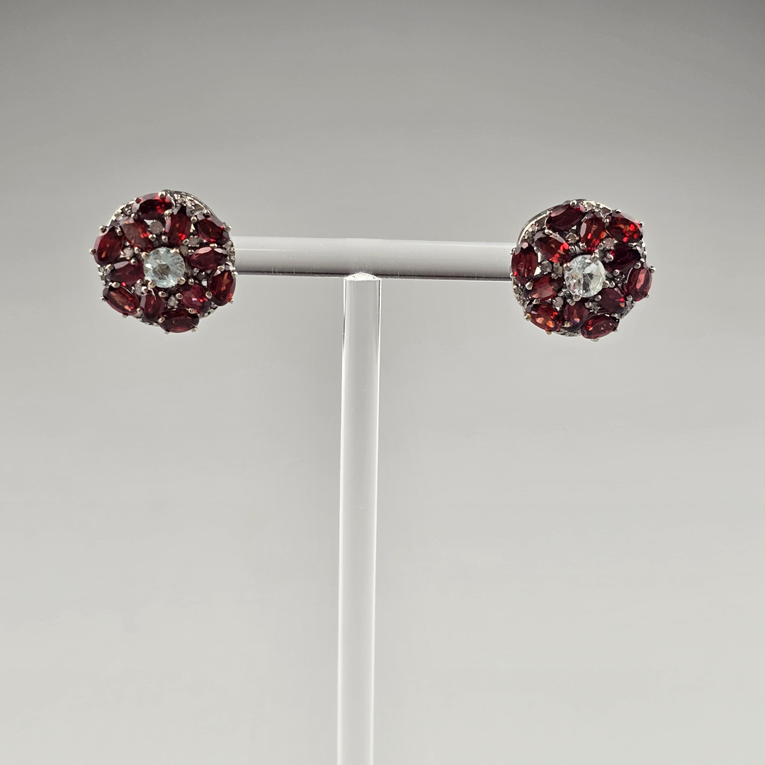 4347510. Garnet Gemstone Studs with Diamond Accents, 925 Silver.