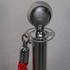 4347642. EINGANGS- UND ABSPERRPFOSTEN, Weißmetall mit rotem Seil.