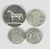 4 Münzen mit einem Durchmesser von ca. 43,4 mm und kleiner.