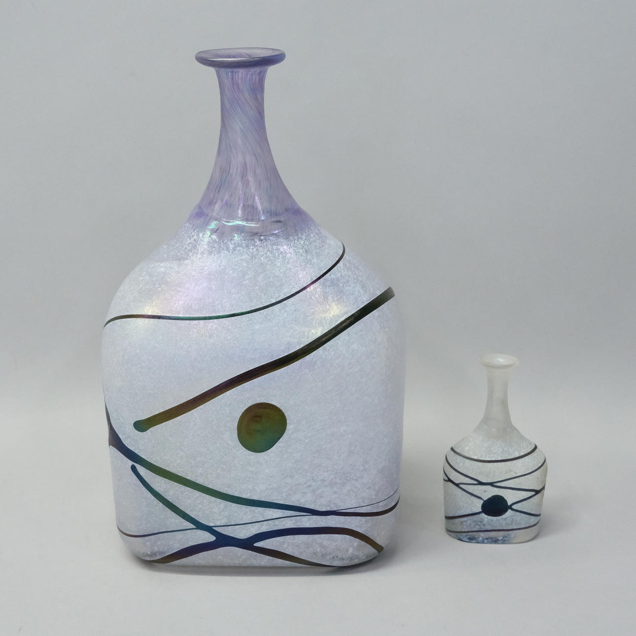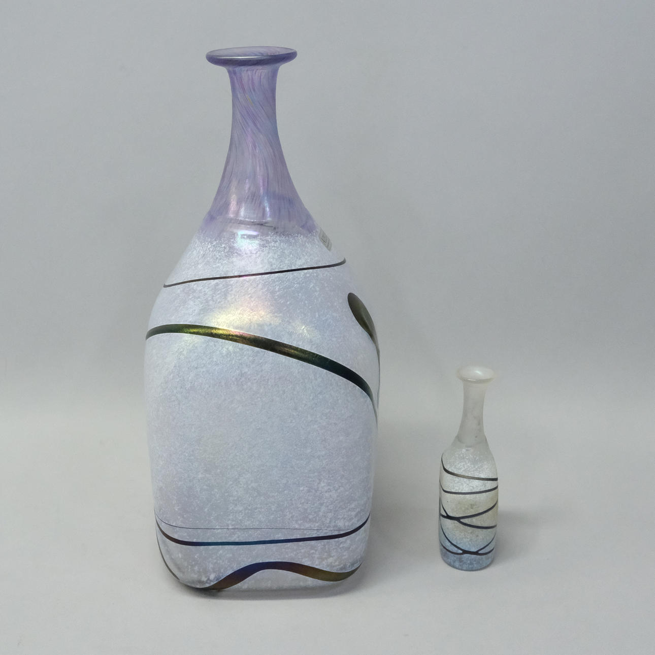 Flasche, Höhe 10 cm und Flasche, Höhe 25 cm, signiert.