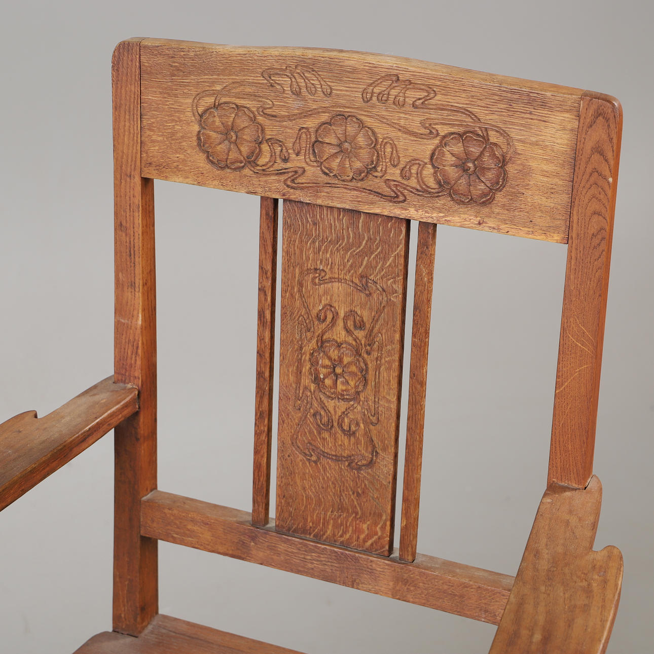 4349130. SESSEL, Eiche mit gepolstertem Ledersitz, Jugendstil.