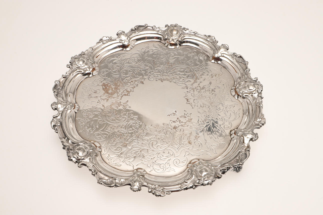 Ein plattierter Salver im georgianischen Stil, 26 cm Durchmesser,