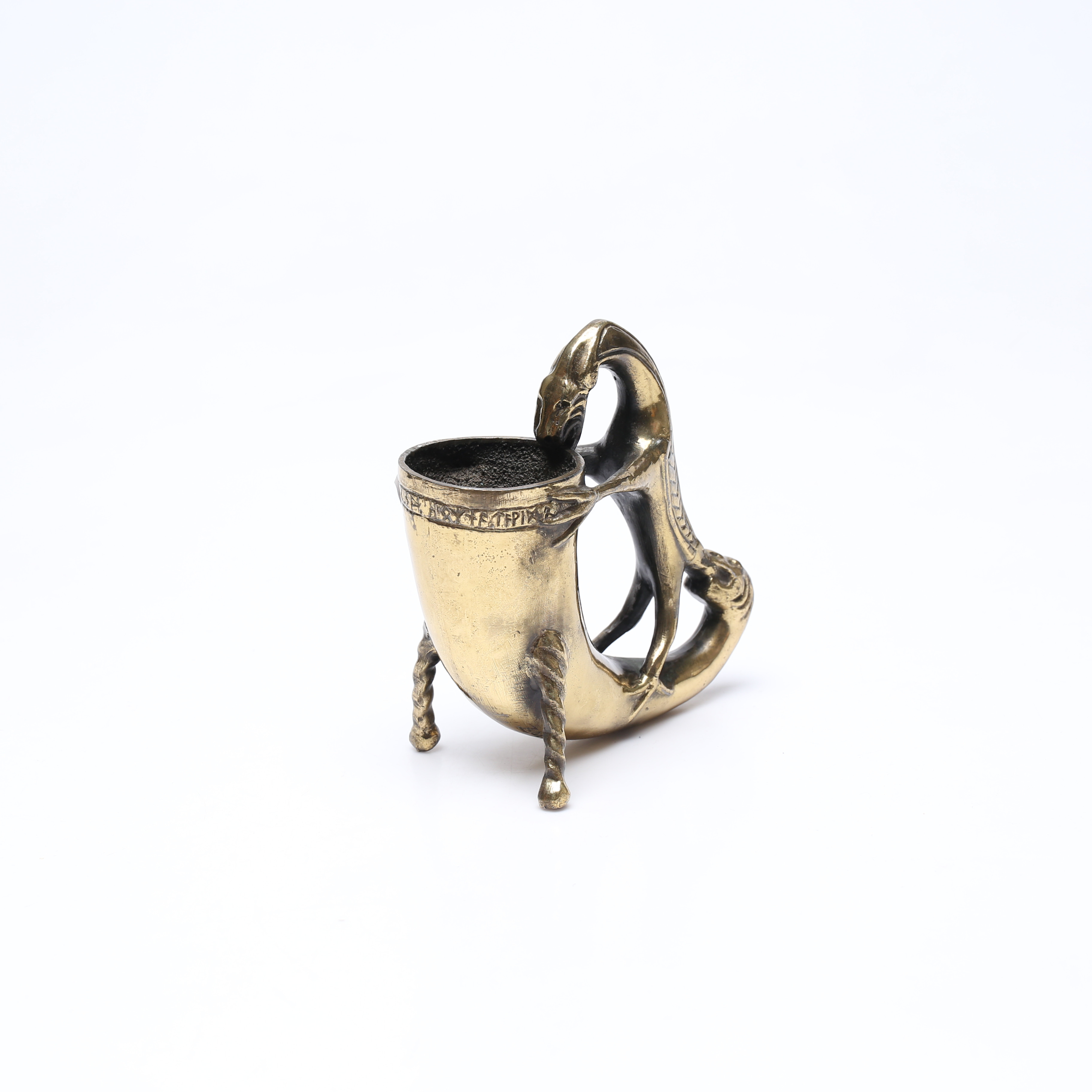 4351502. Ein Messing-Trinkhorn im Wikingerstil, markiert.