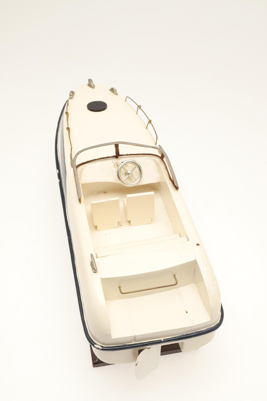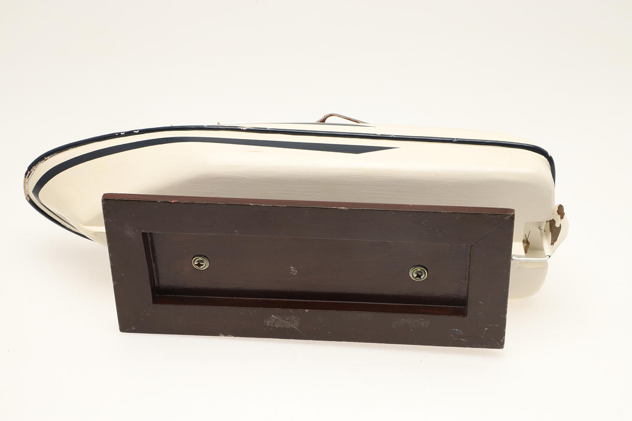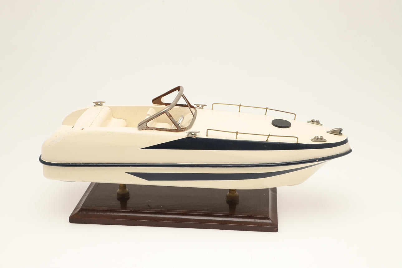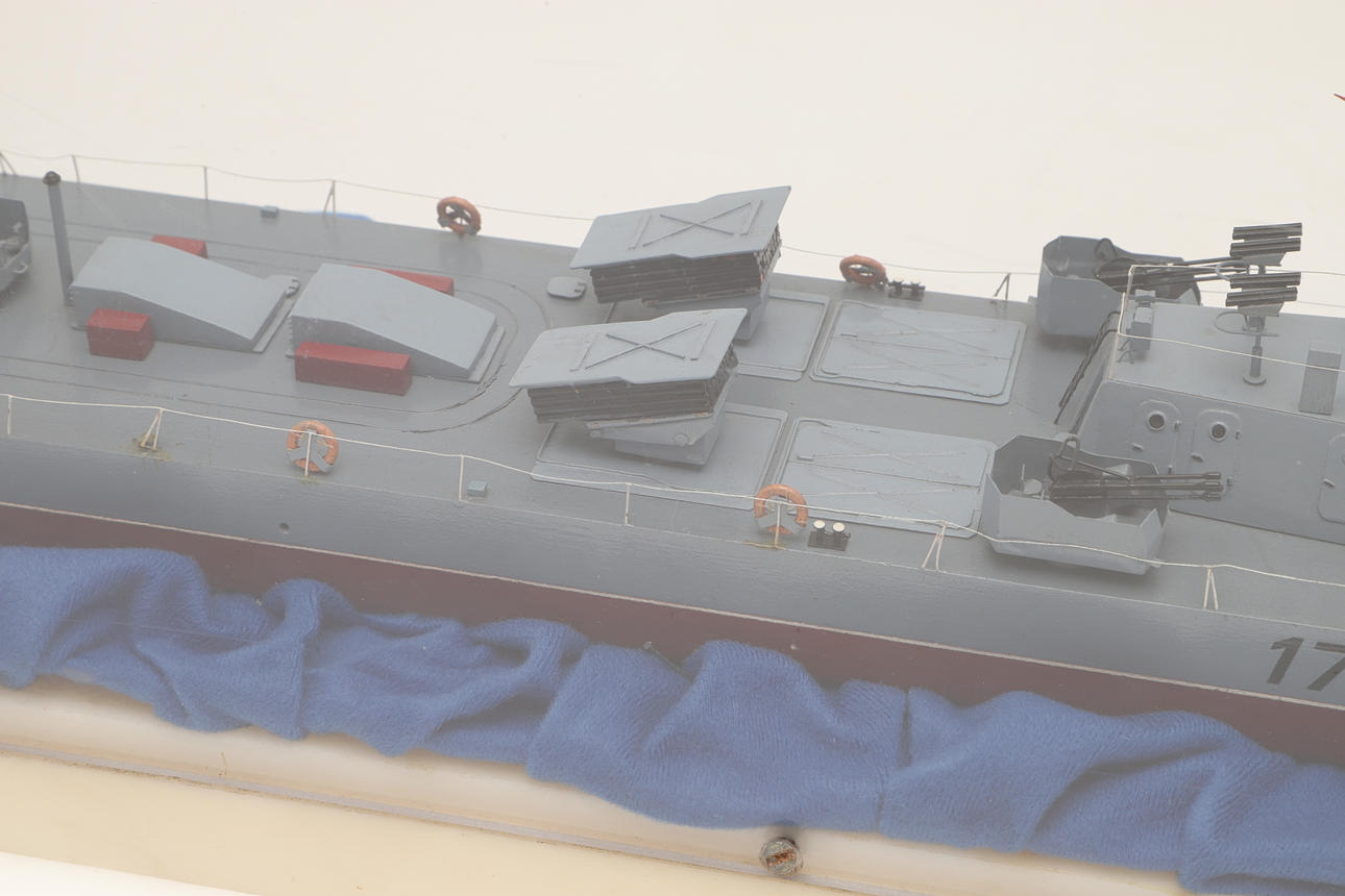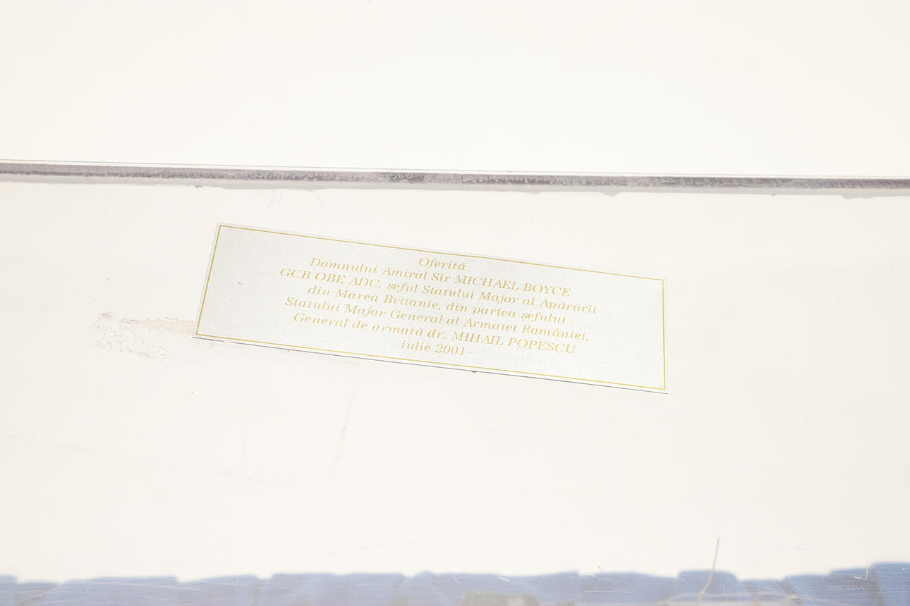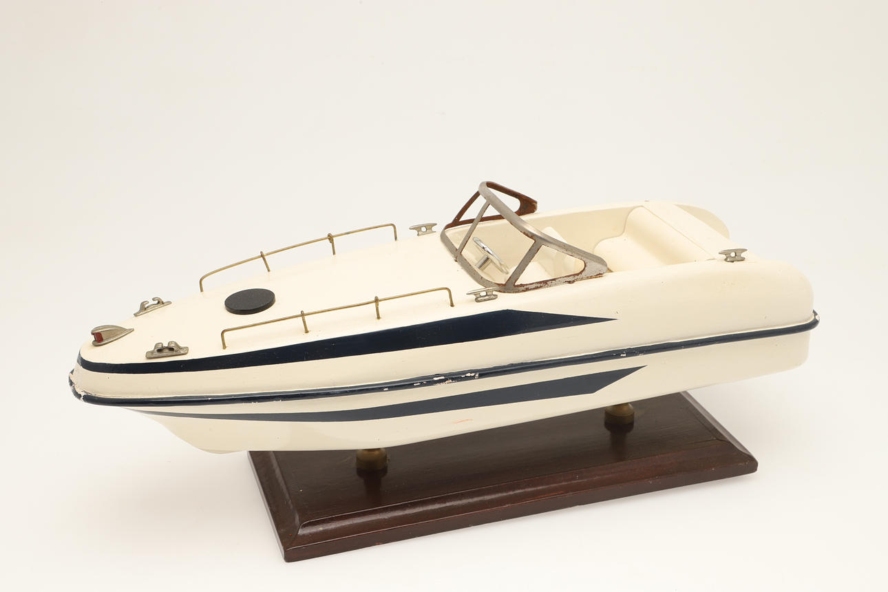 Darunter ein Modell eines rumänischen Marinebootes „Rahova“ in einem Plexiglasgehäuse (51 cm breit, 23 cm hoch), außerdem ein Holzmodell eines Schnellboots auf einem Holzsockel (39 cm lang). (2).