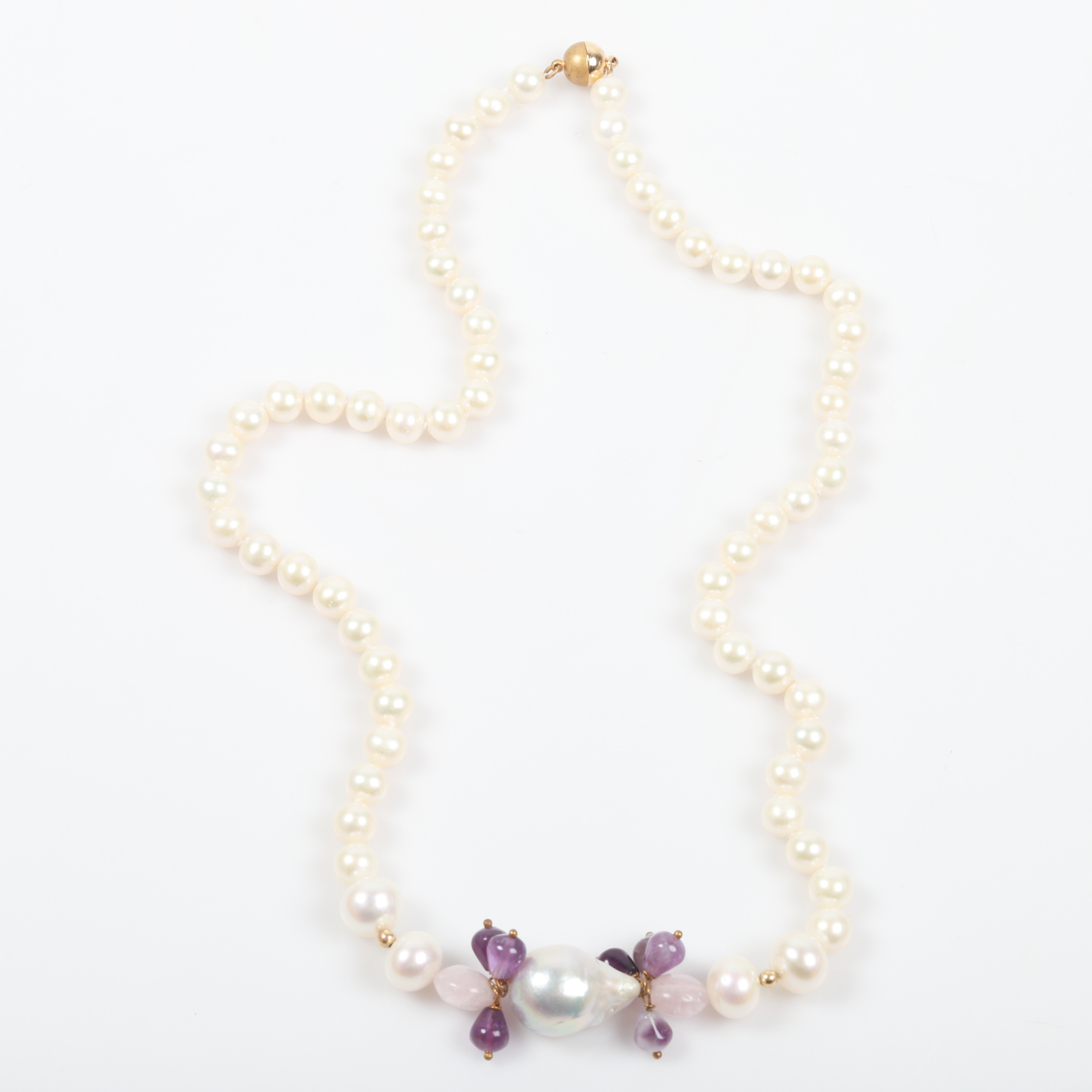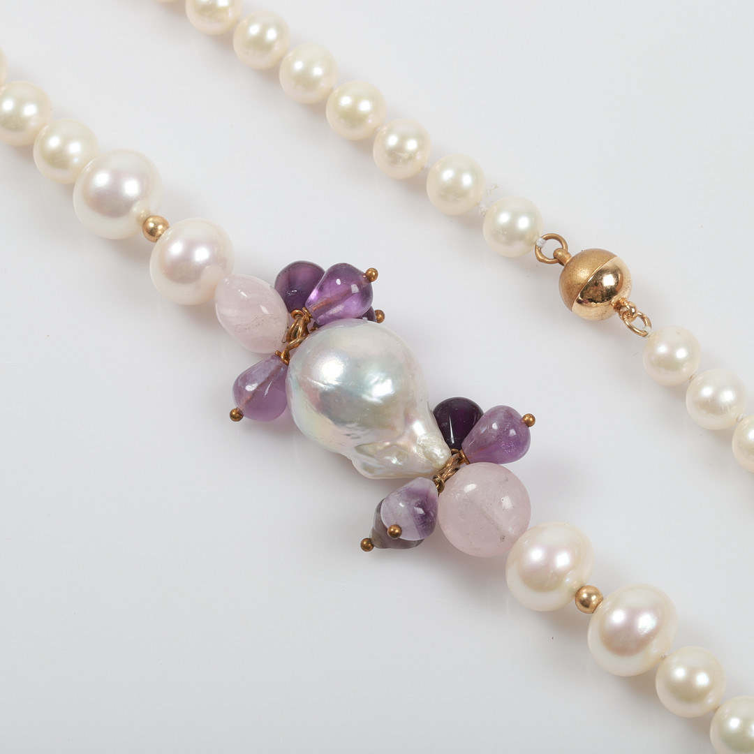 4352421. HALSKETTE, Zuchtperlen und Amethyste.