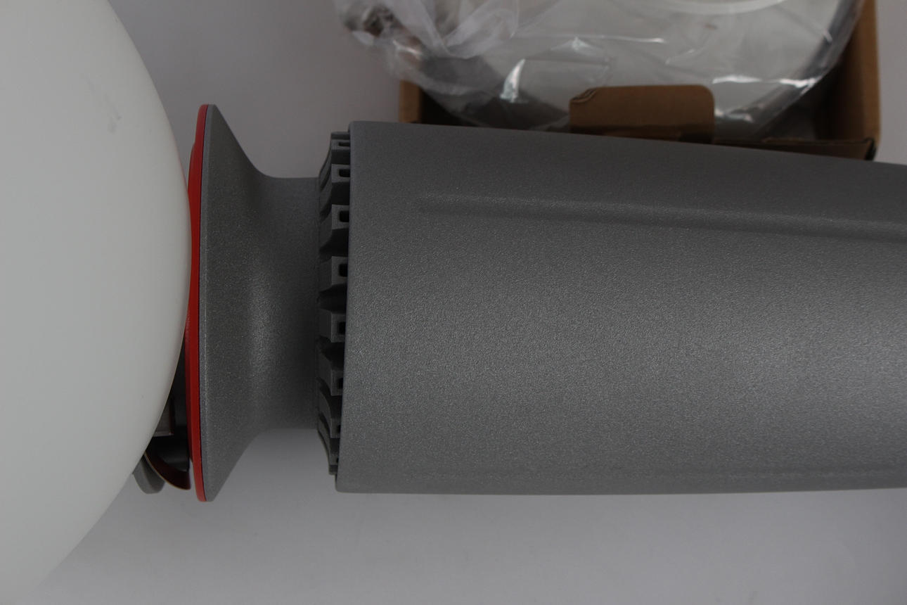 Silberfarbenes Lampengehäuse aus Metall.