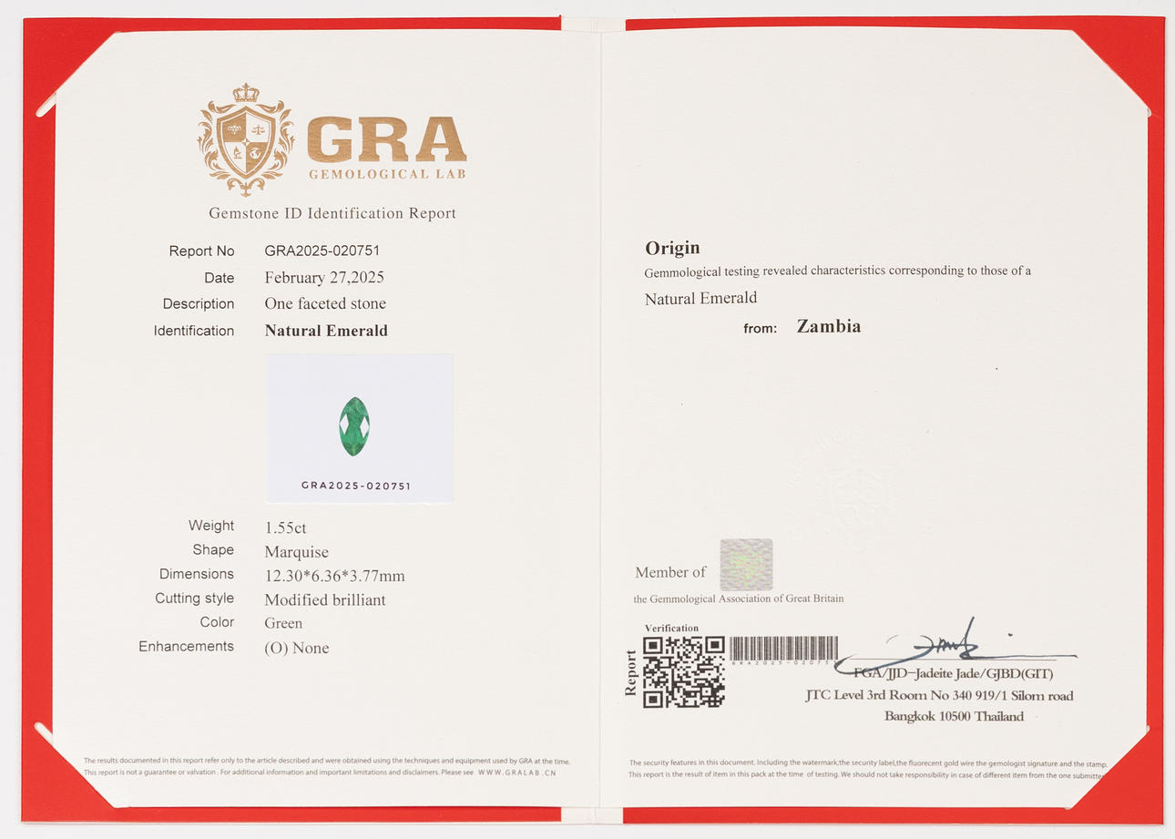 Smaragd im Marquiseschliff von 1,55 ct aus Sambia 12,30x6,36x3,77 mm