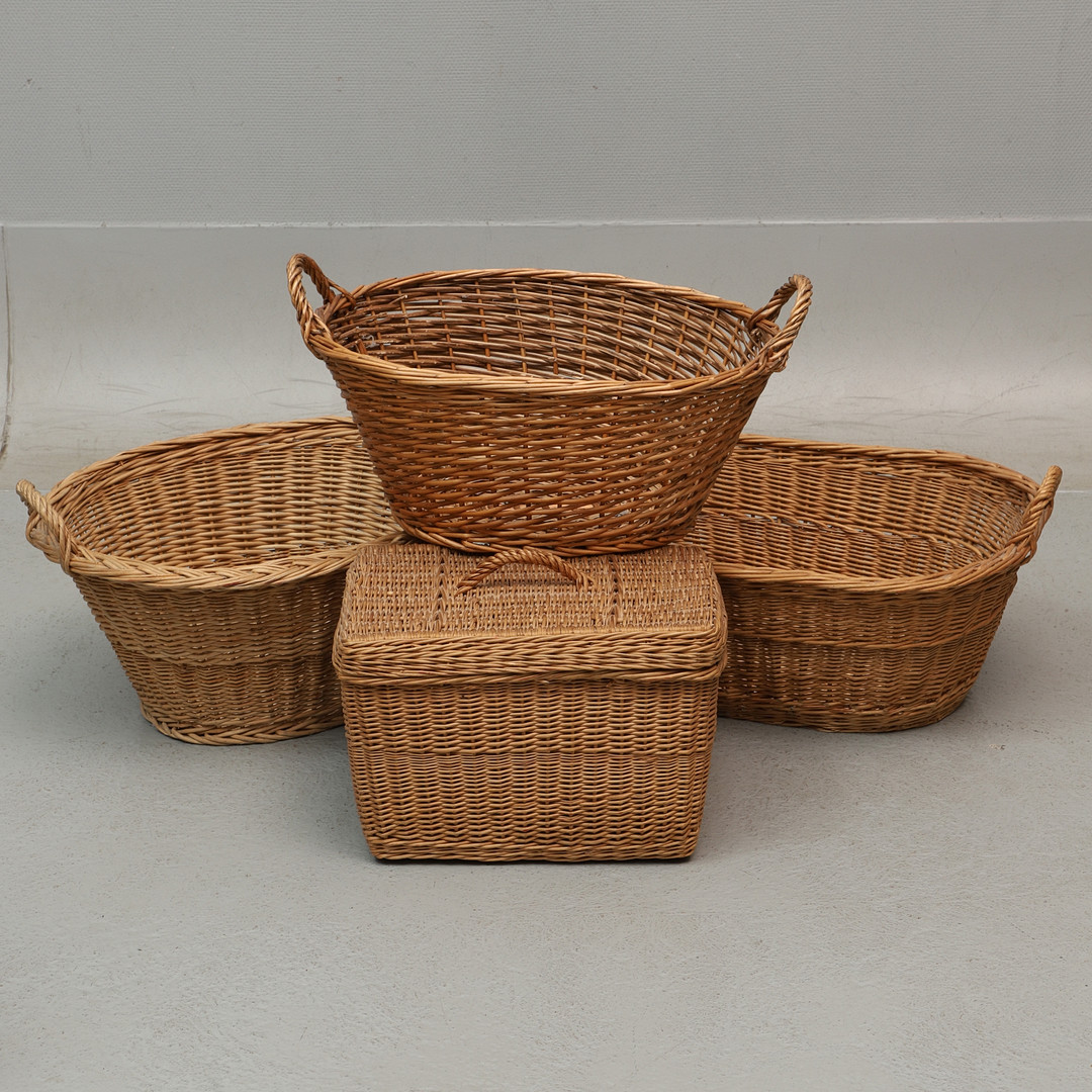 4352842. KÖRBE, 4 Stück Rattan, 20. Jahrhundert.
