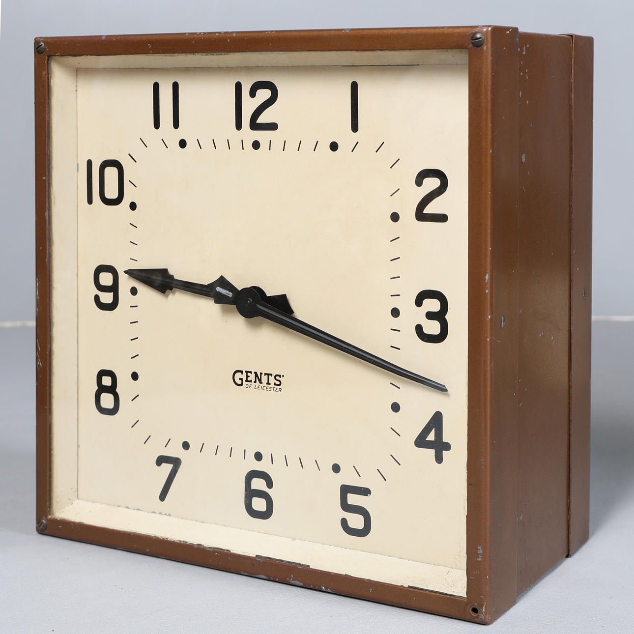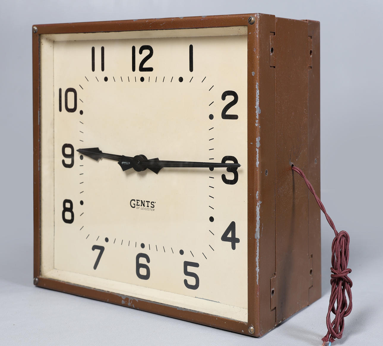 Hat ein cremefarbenes, signiertes Zifferblatt mit arabischen Ziffern und ein braunes Gehäuse, 33 cm hoch, 33 cm breit und 17 cm tief.