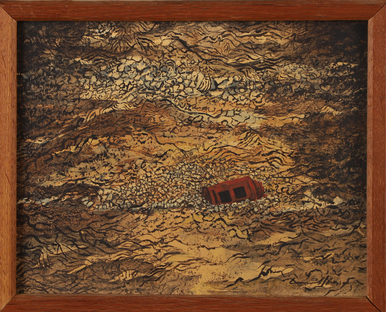 LENNART JÖNSSON. Schwebender Eisenofen, Mischtechnik, signiert.