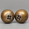 Ein Paar Metallvasen, kugelförmig.