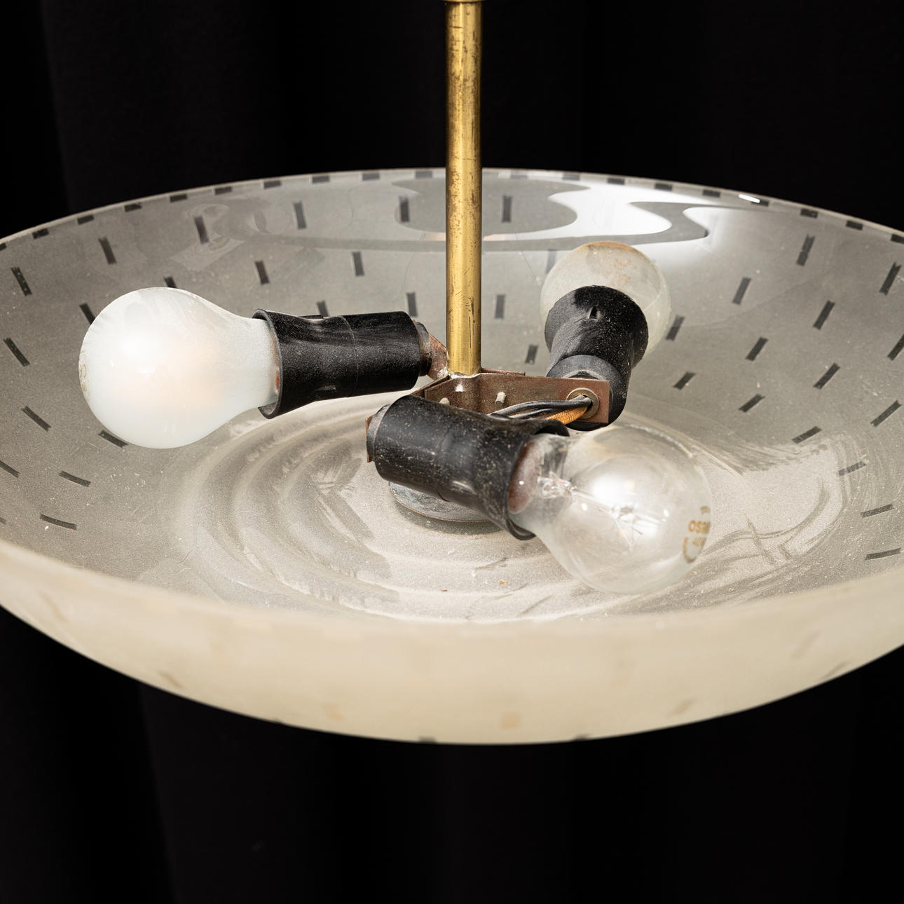 Ein schwedischer moderner Deckenplafond, eine Platte aus gestrahltem Glas, 1940er Jahre.