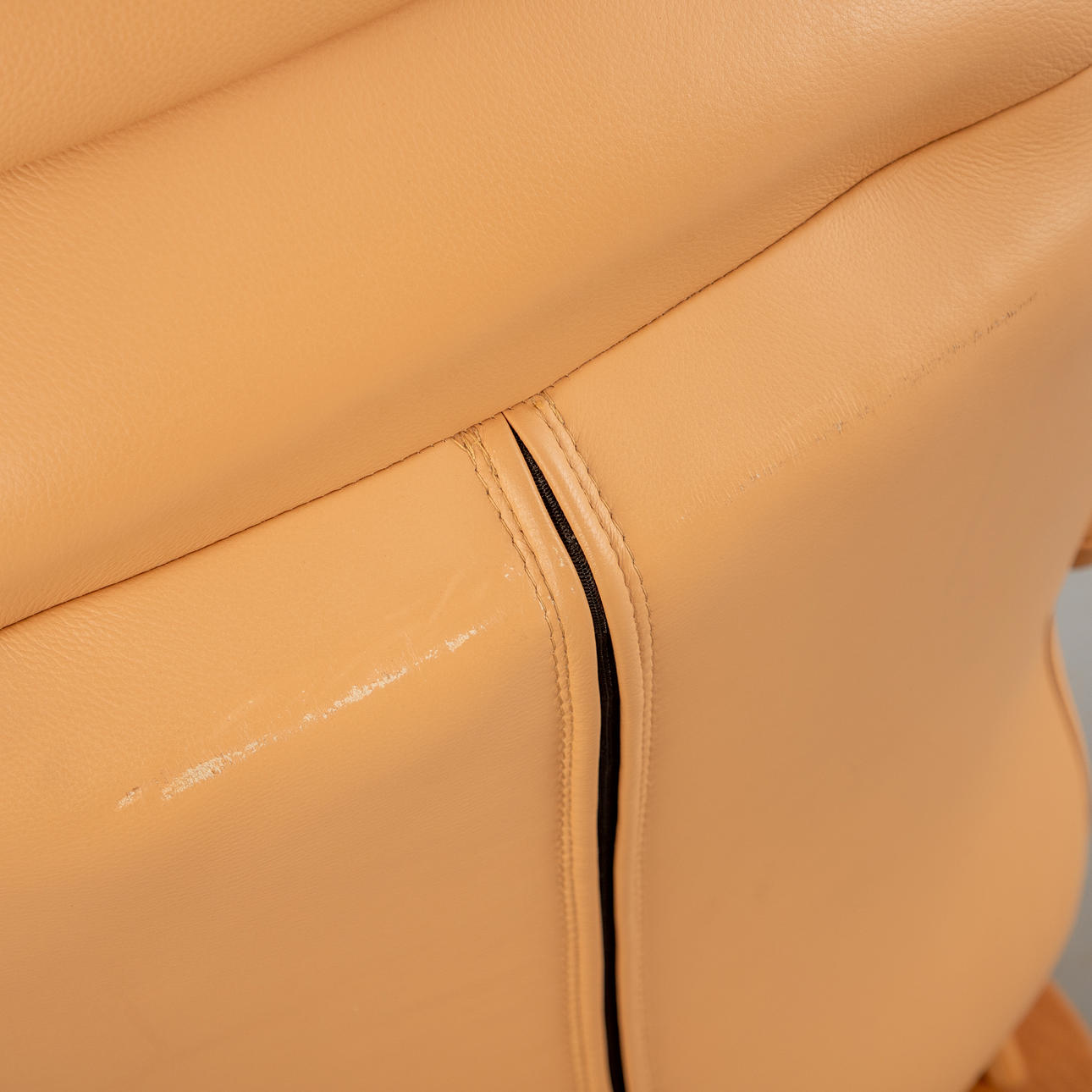 Aufgepolsterte Konstruktion mit Leder bezogen. Sitzposition verstellbar. Bezeichnet "Lafer".