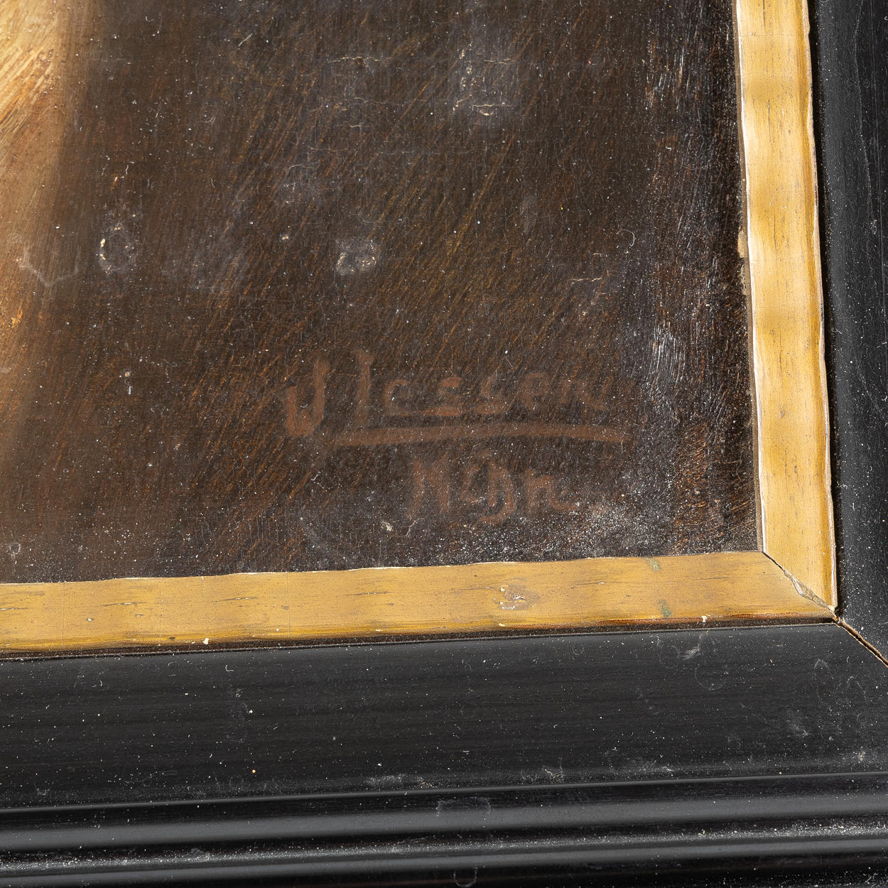 Signiert J Lessen, ca. 25 x 21 cm, inklusive Rahmen 44 x 40 cm.