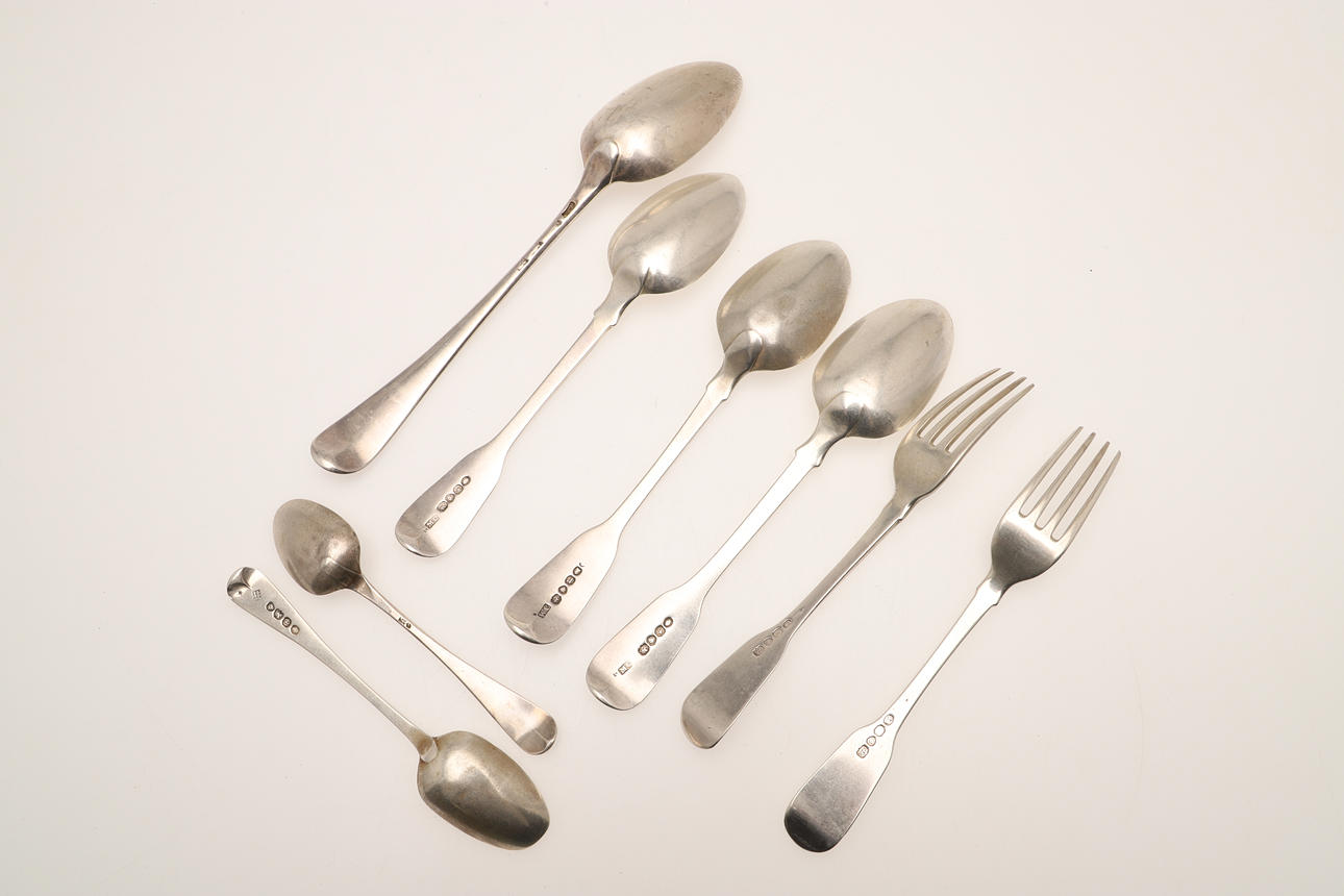 4355750. EINE GEMISCHTE MENGE SILBERNER BESTECKE, WILLIAM IV UND FRÜHER.