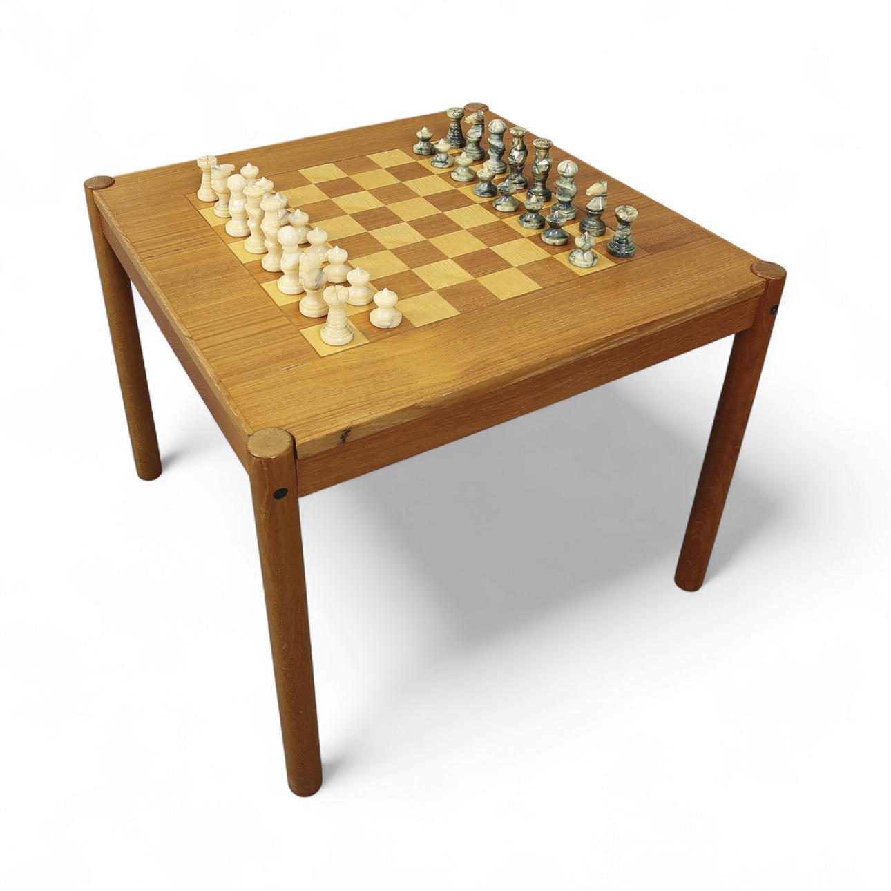 4355911. SCHACHTISCH, MIT ALABASTERFIGUREN.