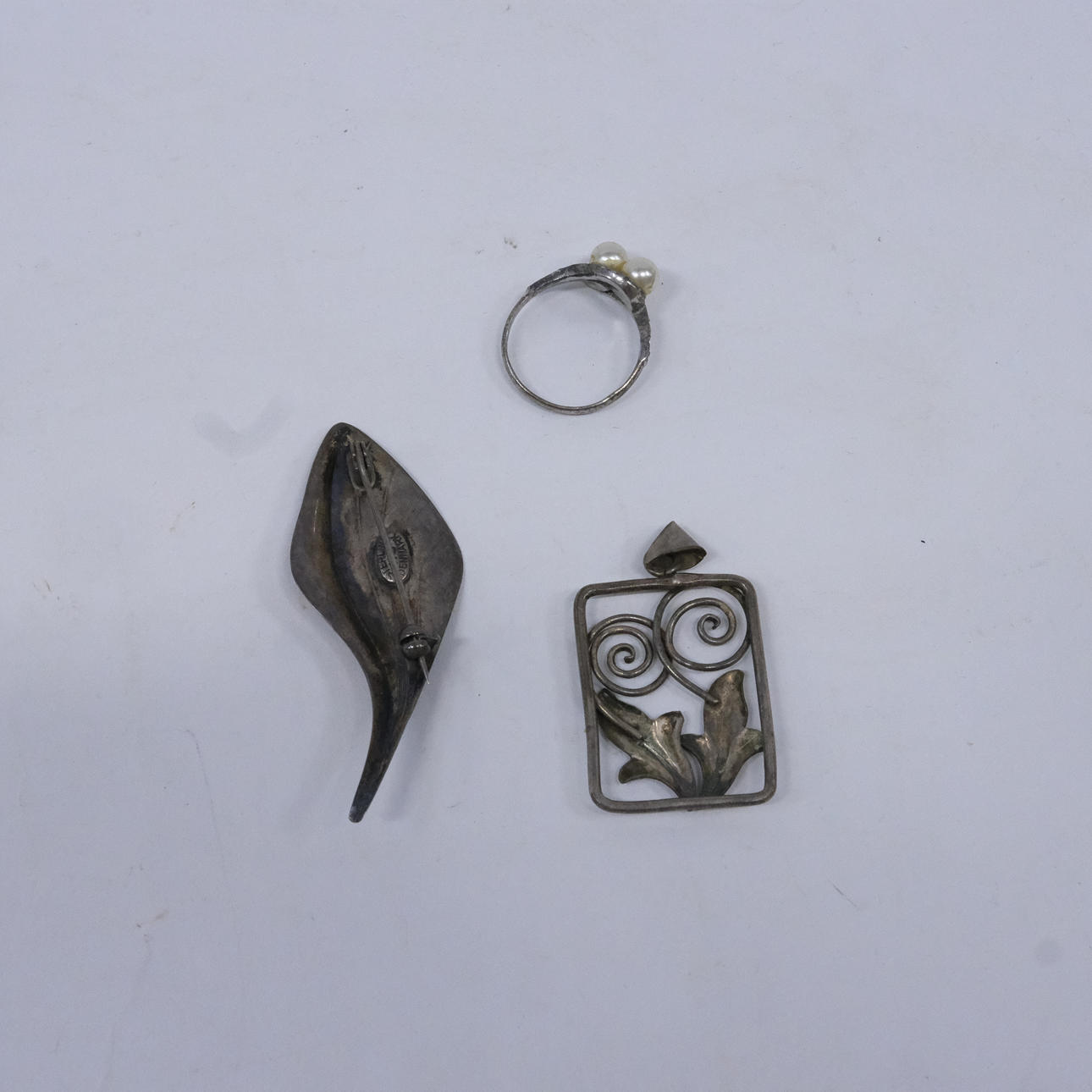 2 Armbänder, 1 Anhänger, 1 Brosche und 1 Ring, Mitte des 20. Jahrhunderts.