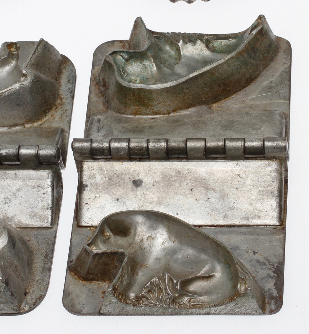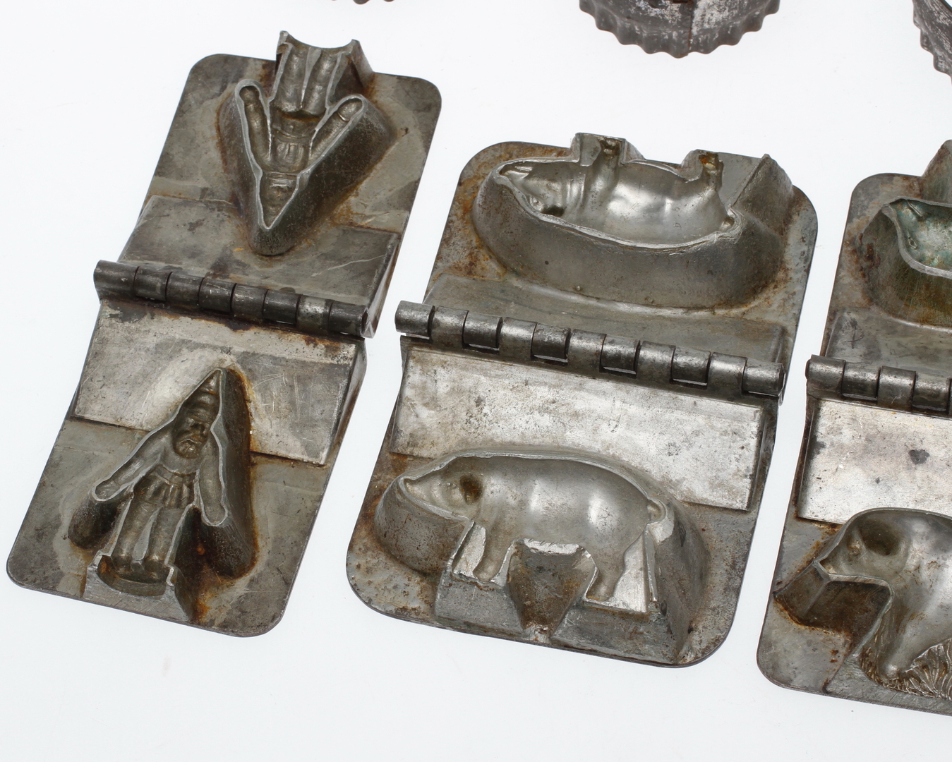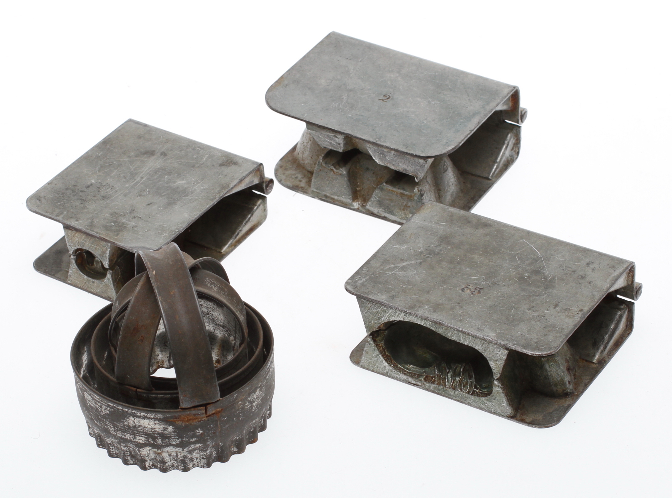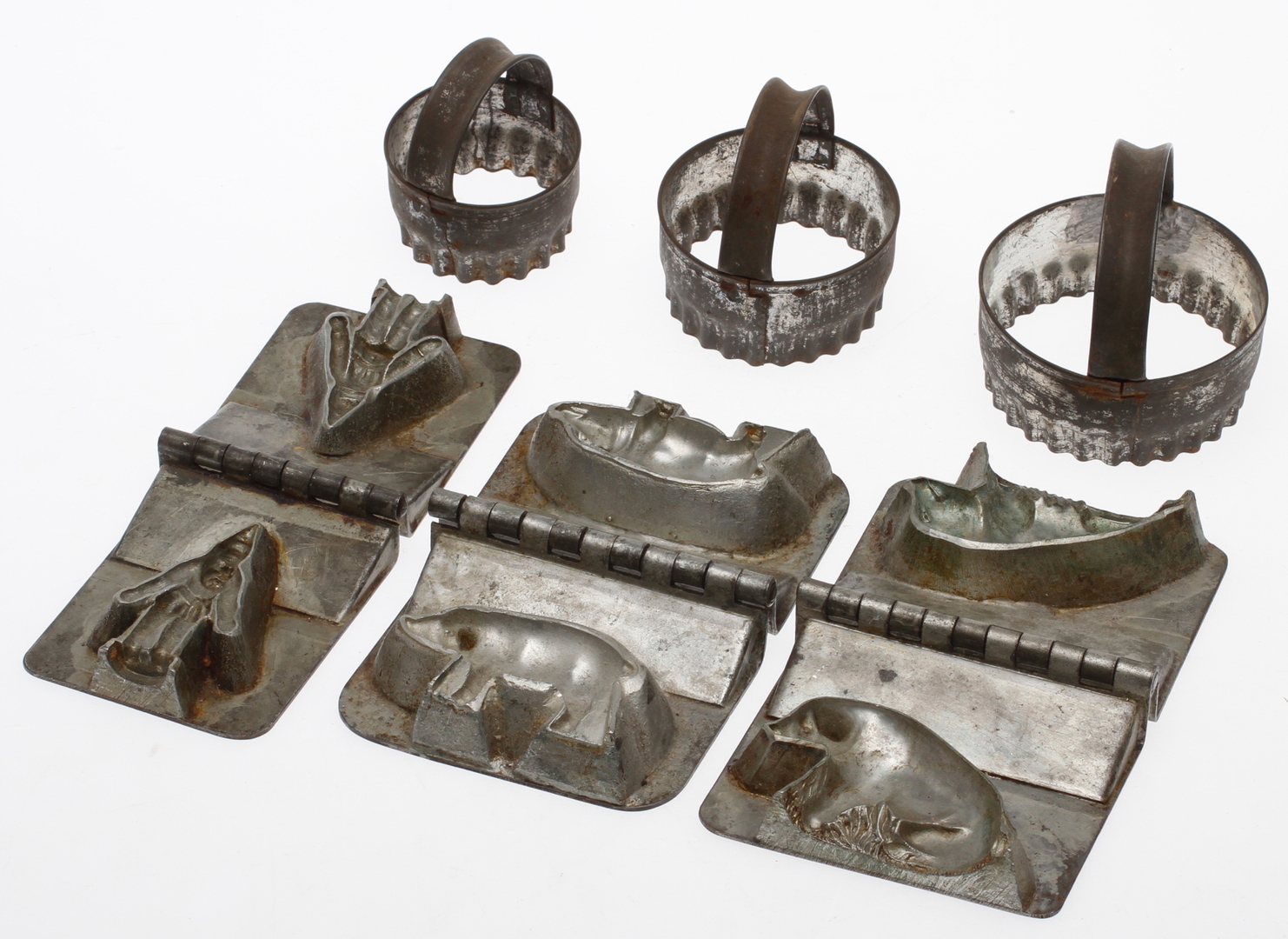 43563. MARZIPAN- und KUCHENFORMEN, 6 Stück, Metall.