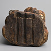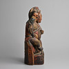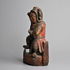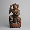 Stehend modelliert, mit Kopfschmuck und Rüstung, auf gewölbtem und geschnitztem Sockel, mit farbigen Pigmenten bemalt, 36 cm hoch.