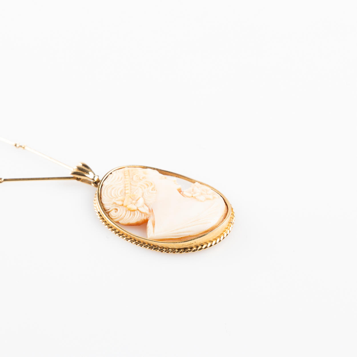 CAMÈ-ANHÄNGER MIT STABKETTE, 18 K Gold.