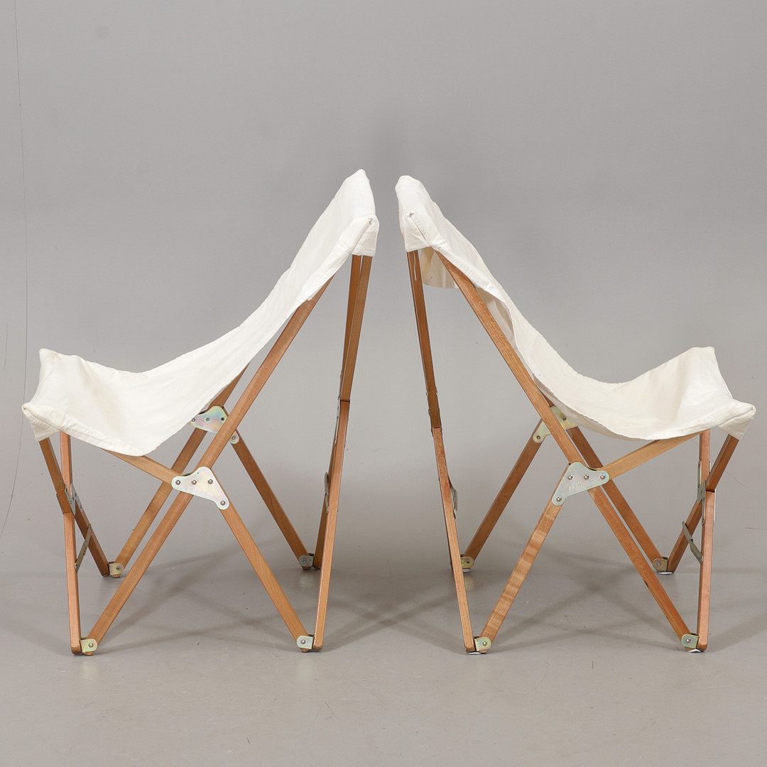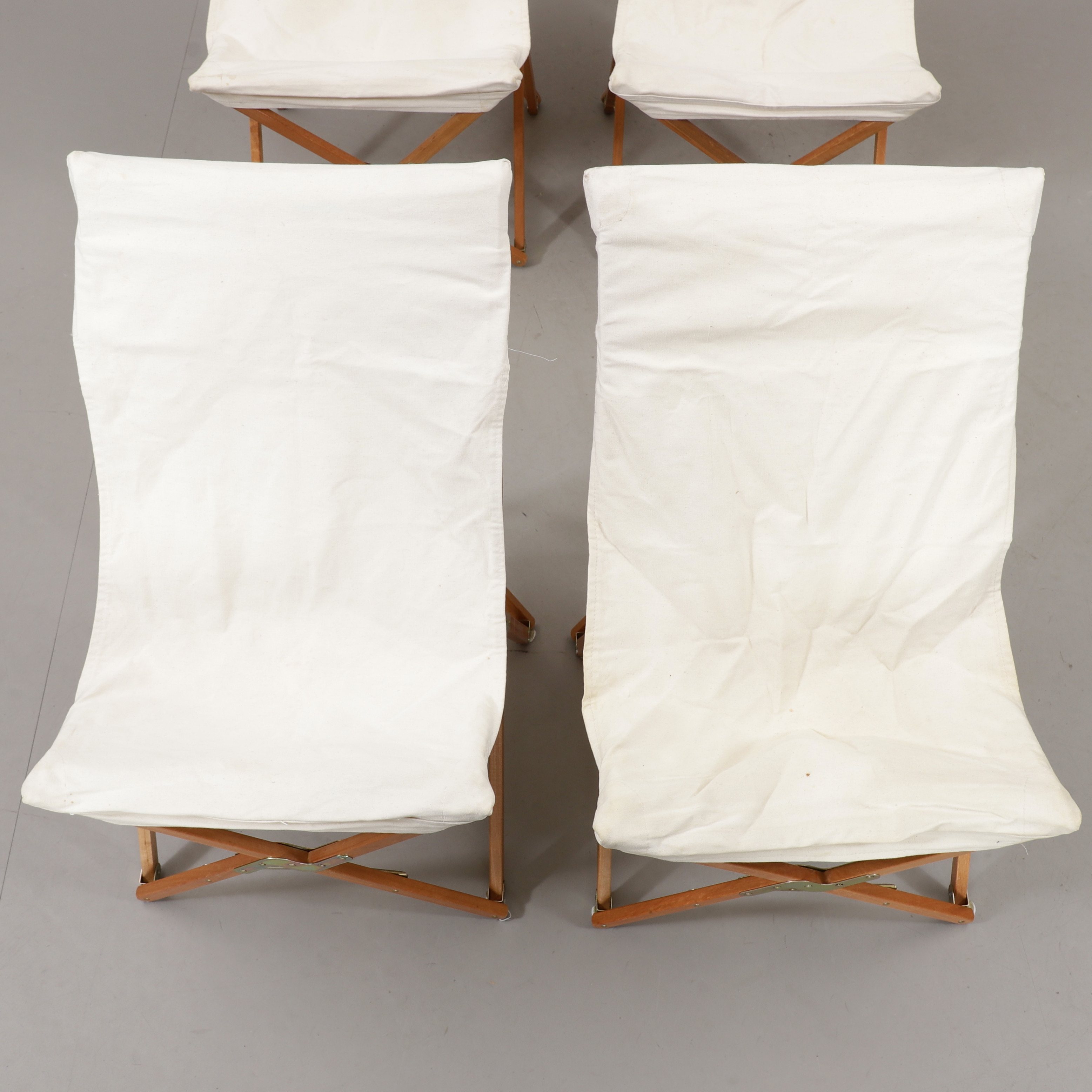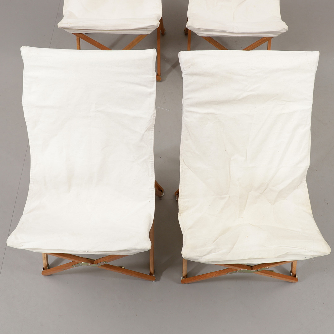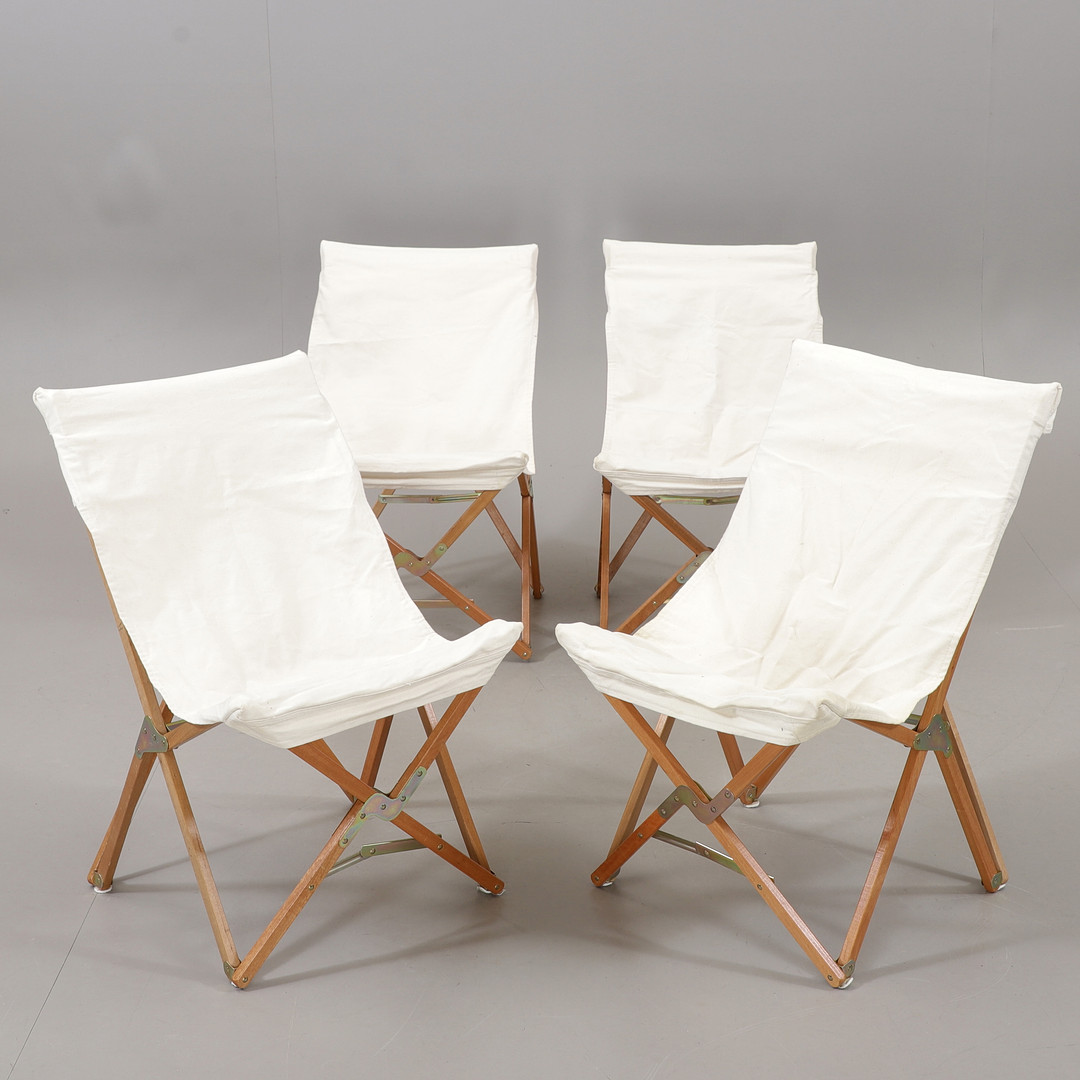 4357022. Ein Satz von 4 Klappstühlen, Holz/Stoff, 1990er.