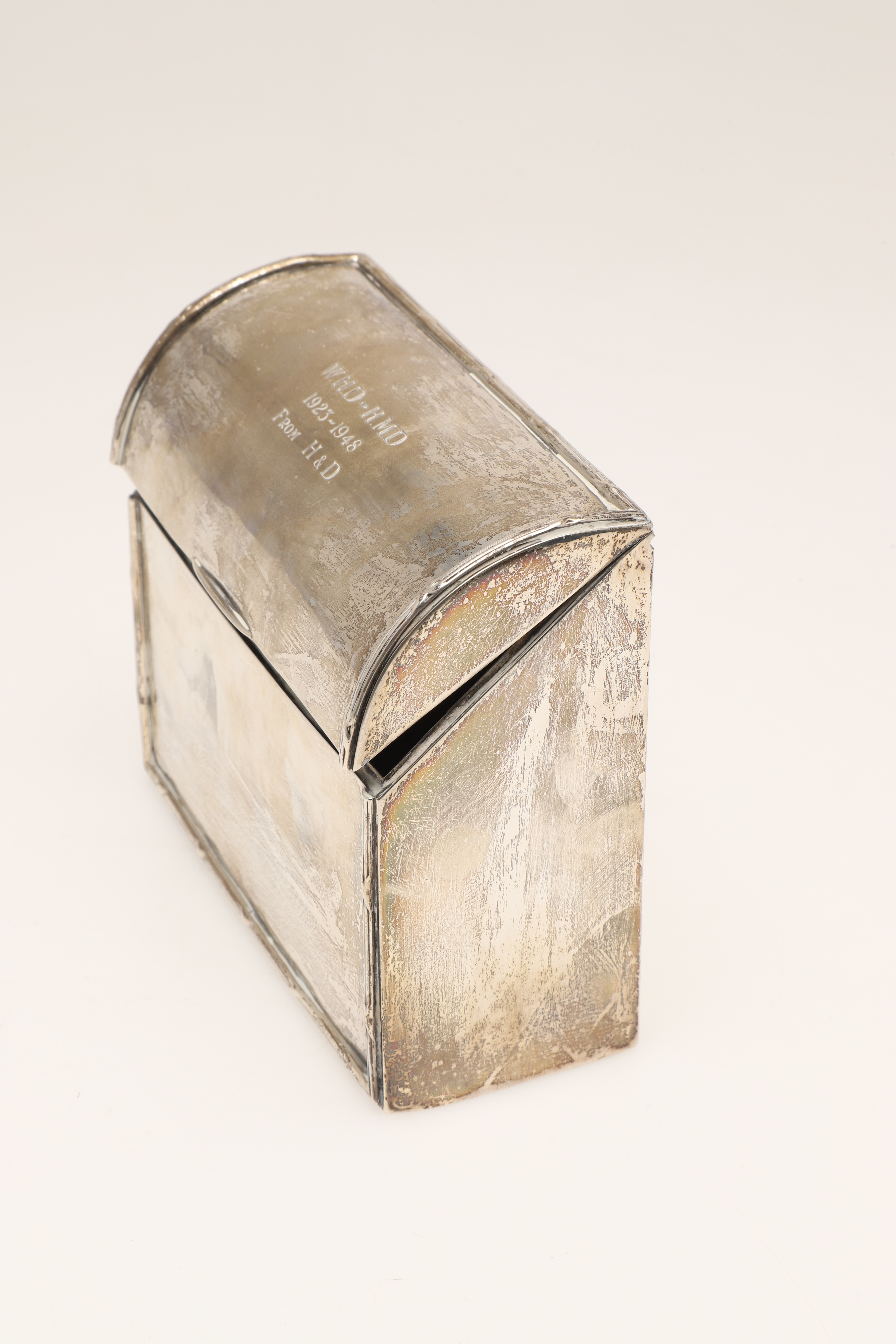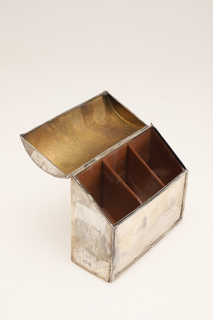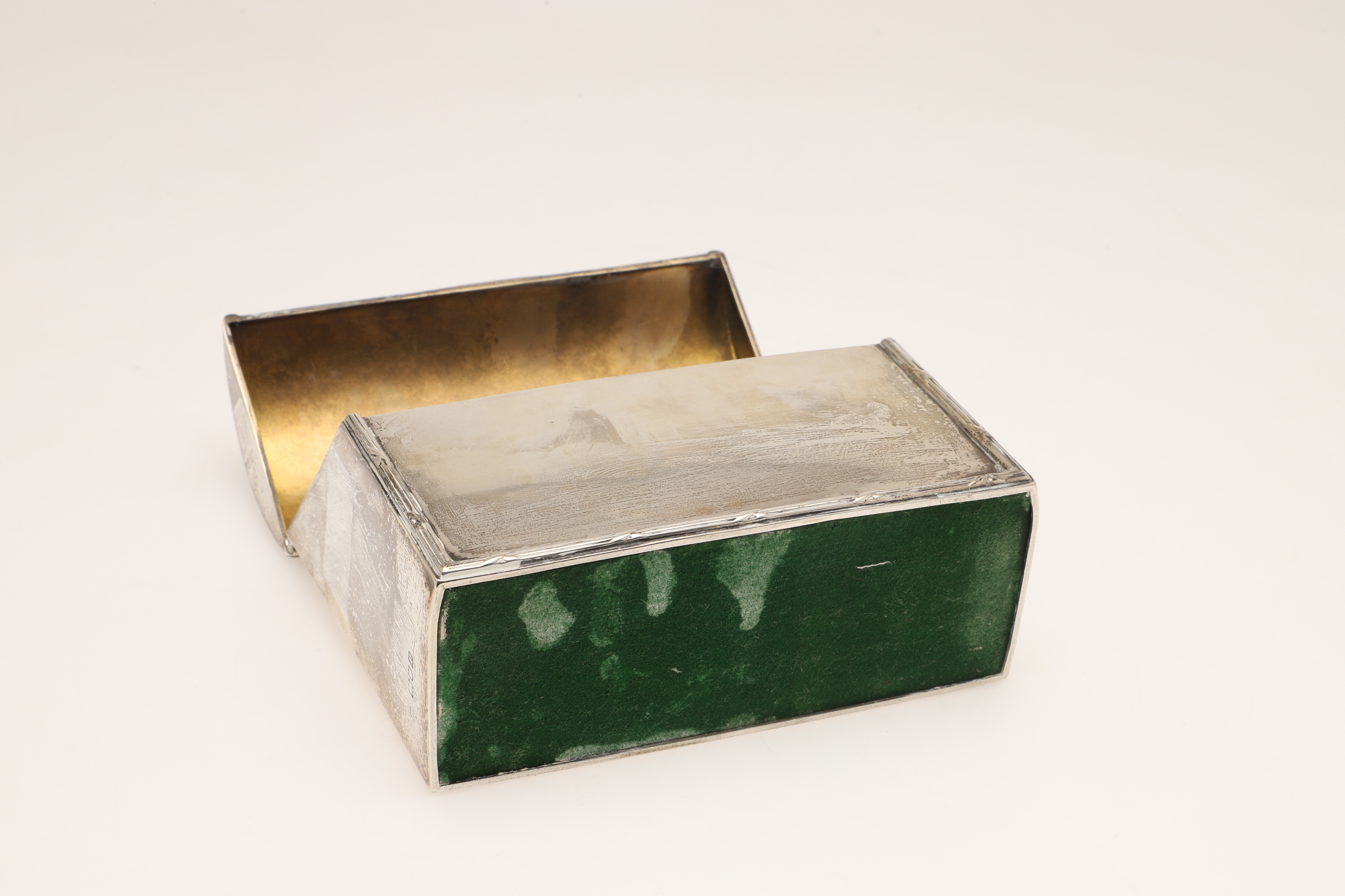 4358240. EINE RECHTECKIGE SILBERNE BOX.