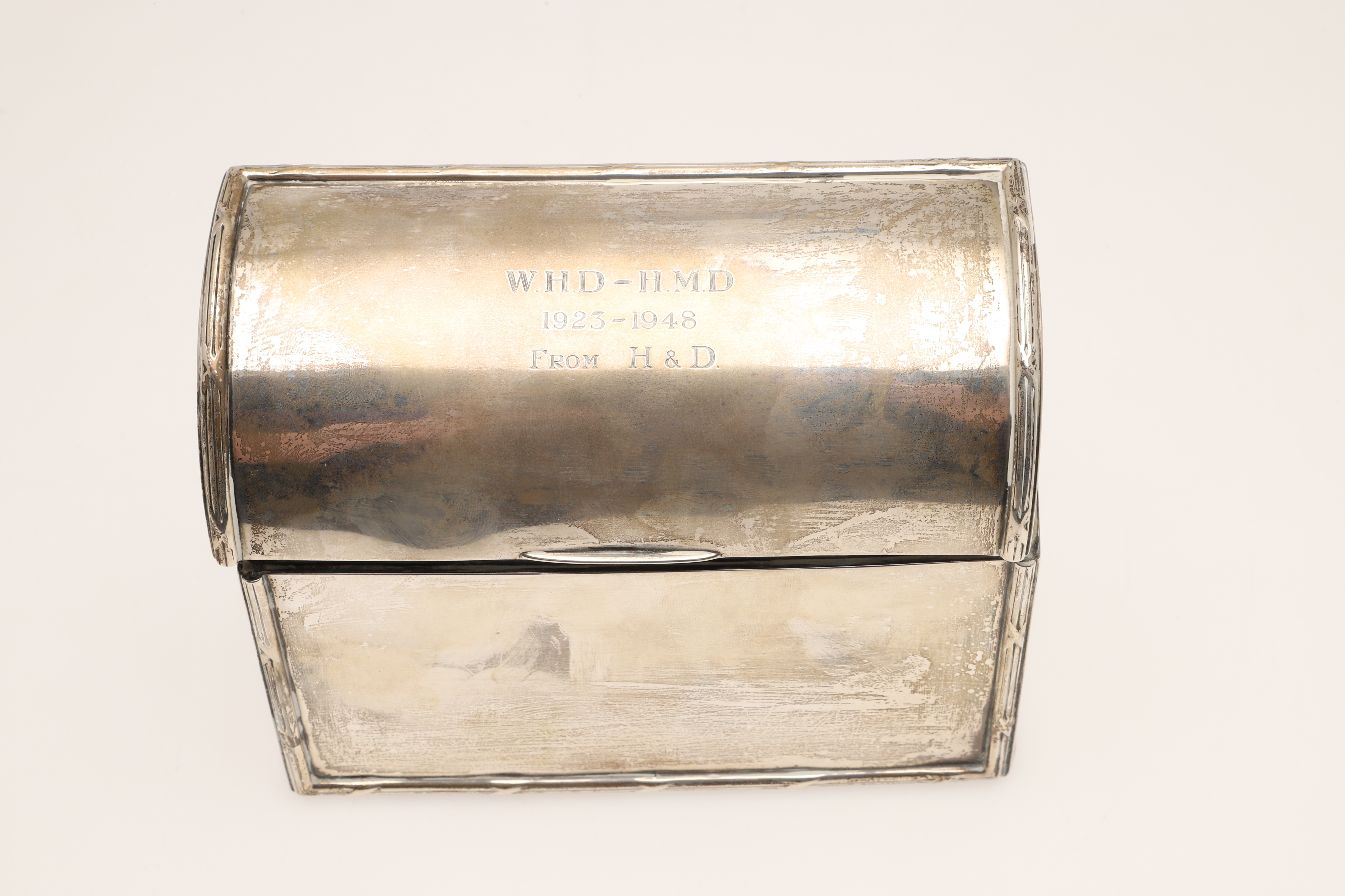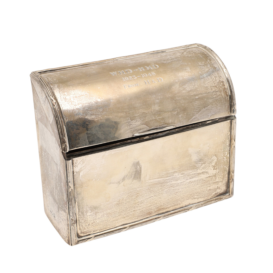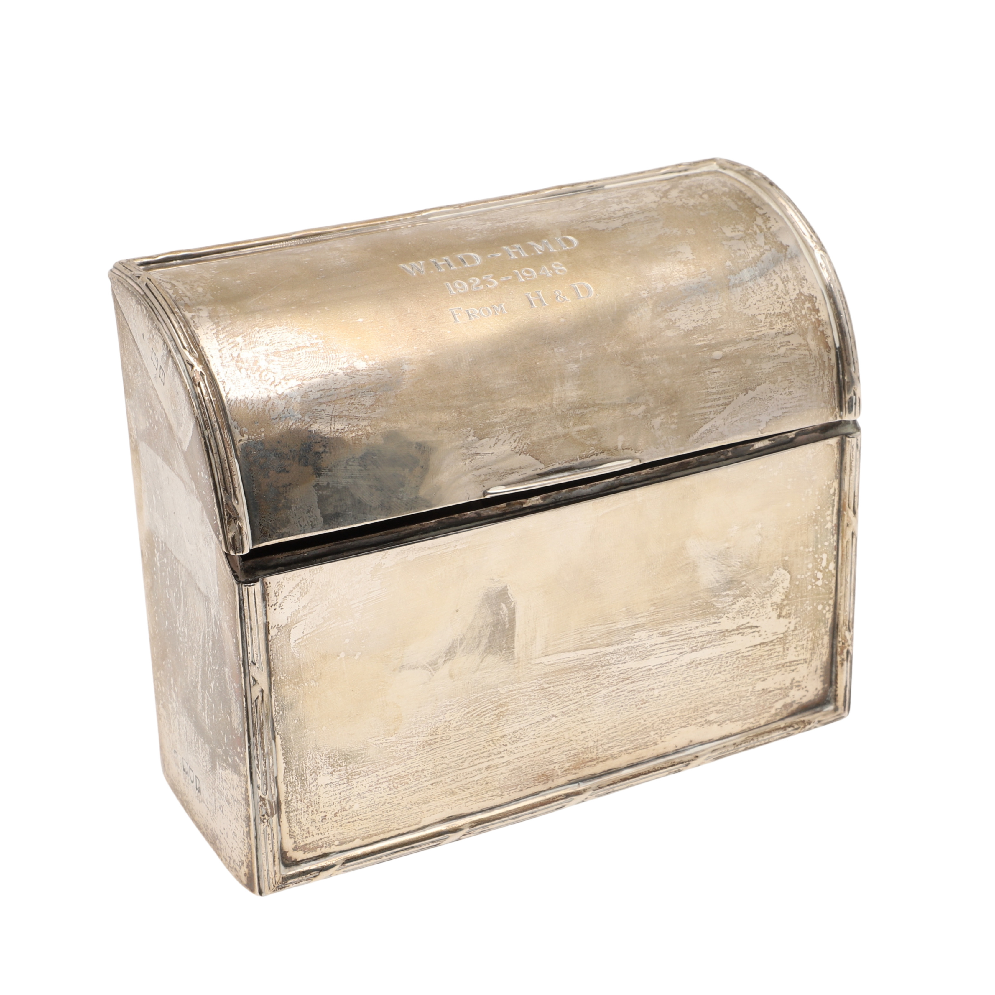 4358240. EINE RECHTECKIGE SILBERNE BOX.