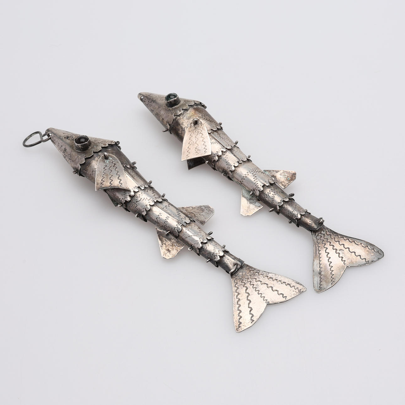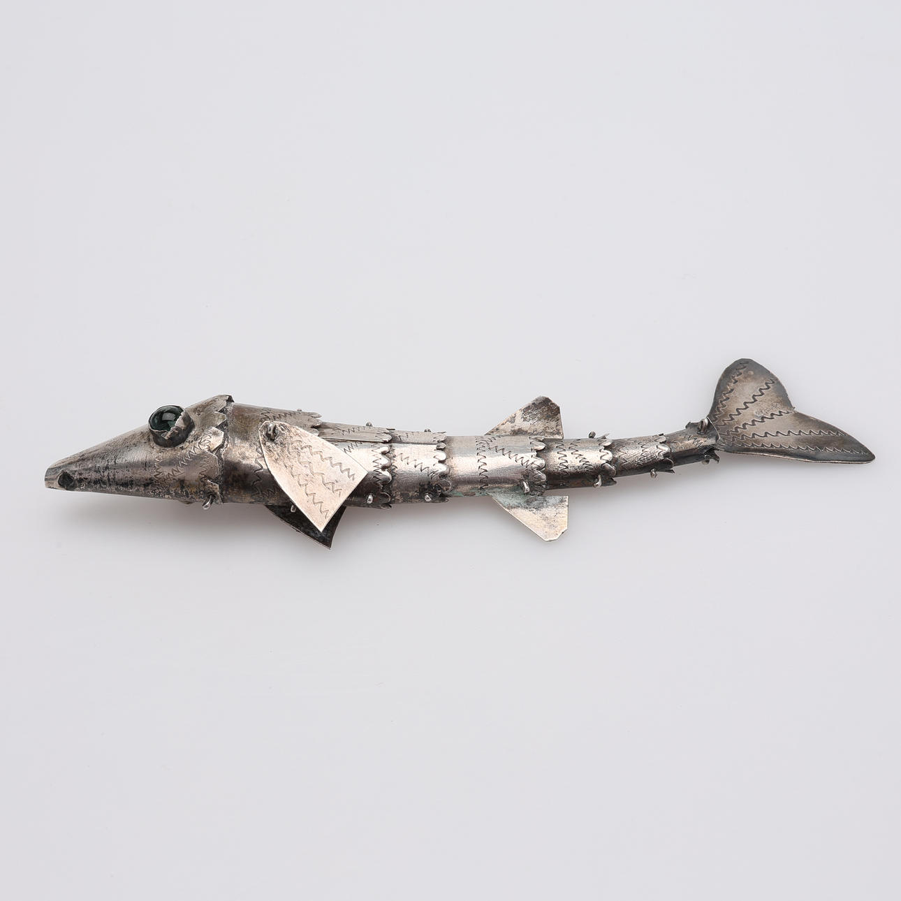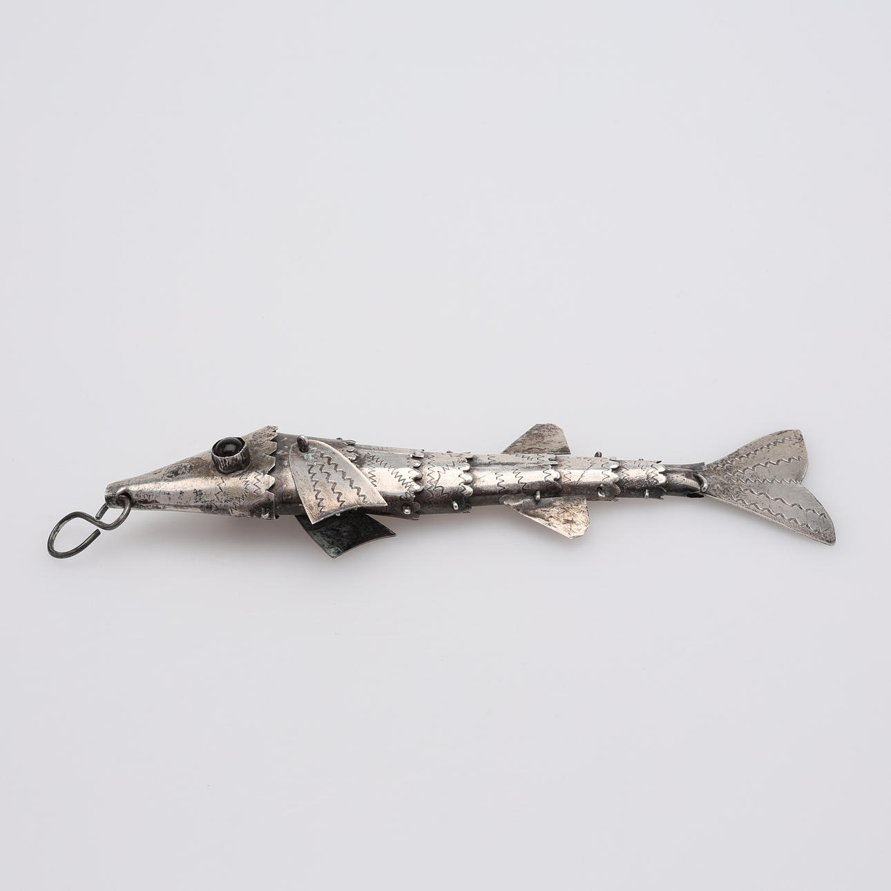 In Form von Gelenkfischen, Länge ca. 13 cm. Gesamtgewicht ca. 24 Gramm.