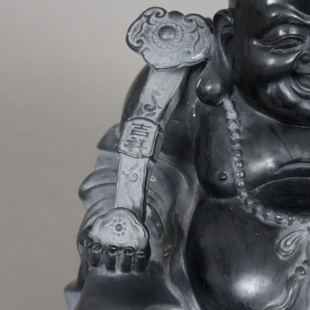 - BUDAI - 20. Jh., Massefigur und schwarzer Lack.