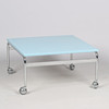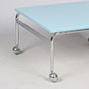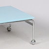 Couchtisch „Karin“ mit hellblauer Arbeitsplatte und verchromtem Gestell auf Rädern. Entworfen von Bruno Mathsson und ausgeführt bei DUX Möbel AB, Schweden (nicht gekennzeichnet).