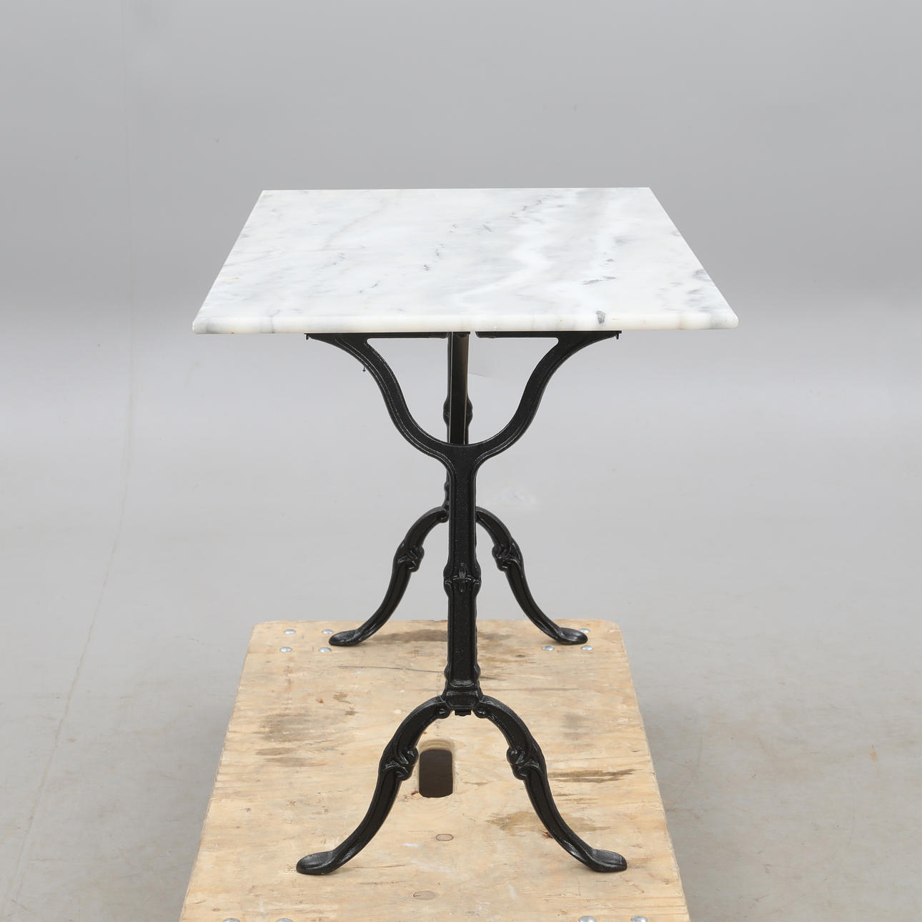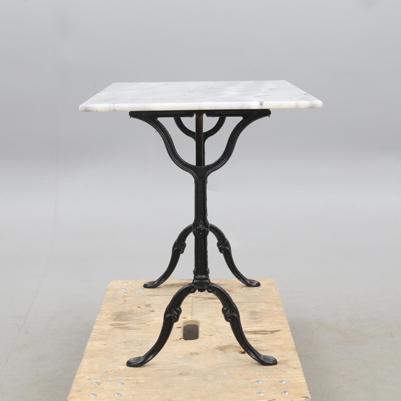 4360188. GARTENTISCH, Standfuß aus Gusseisen mit Marmorplatte.